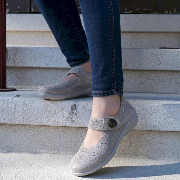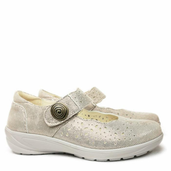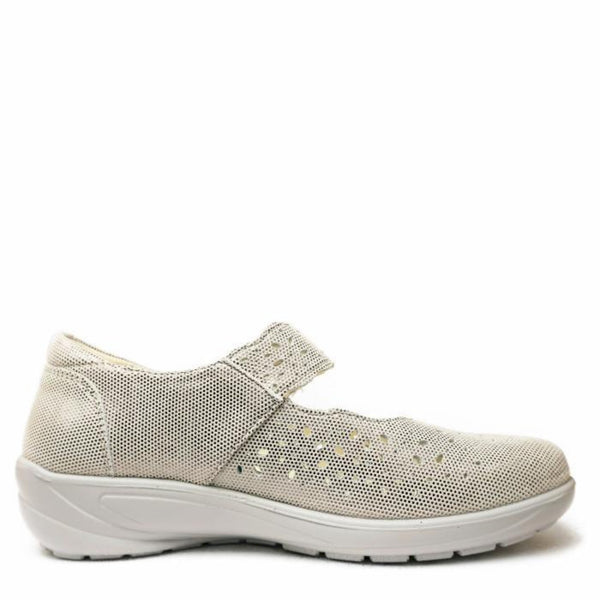questa scarpetta in stile mary jane con forte posteriore si distingue per la sua tomaia particolare, in morbidissimo camoscio traforato con dettagli luminosi, femminile ed elegante!