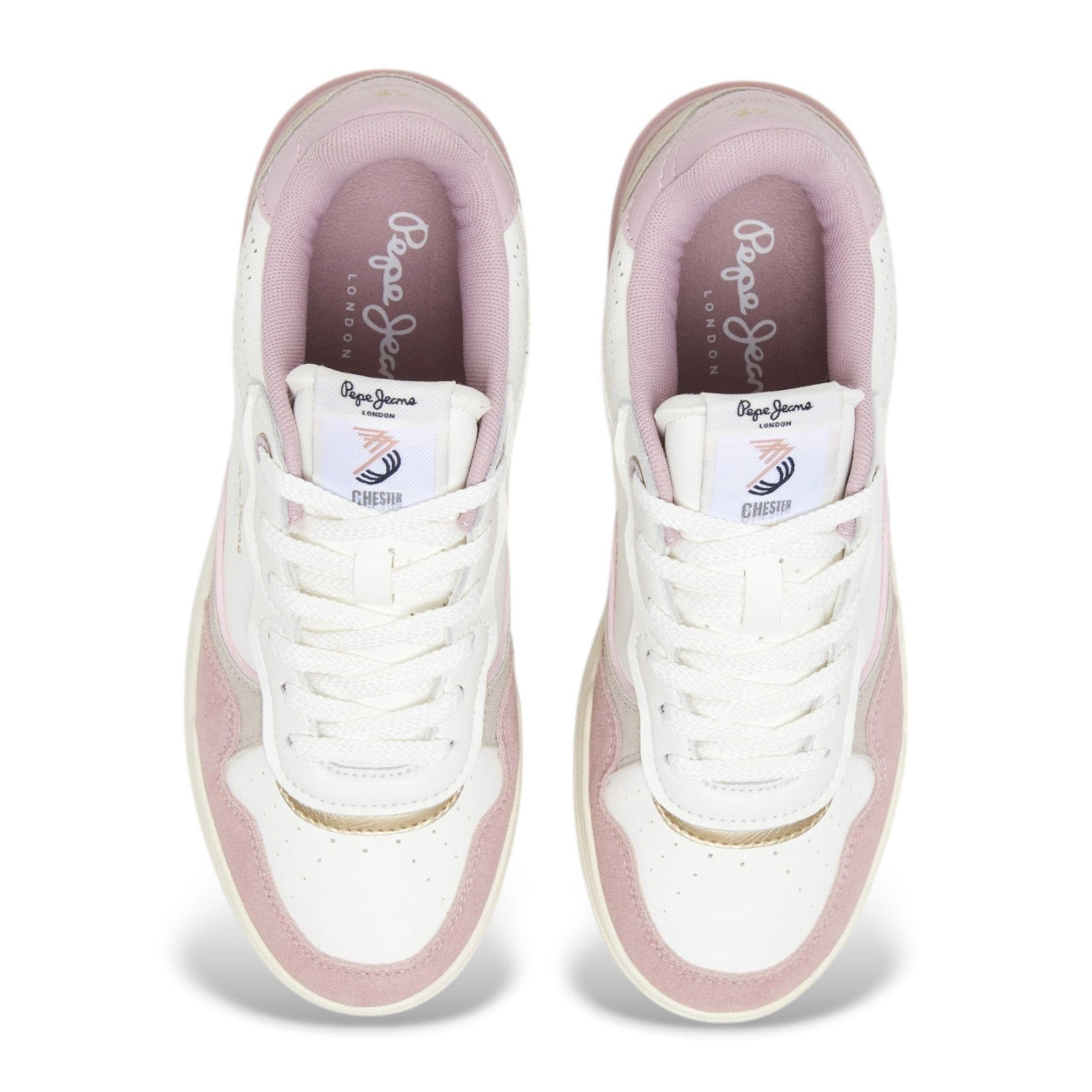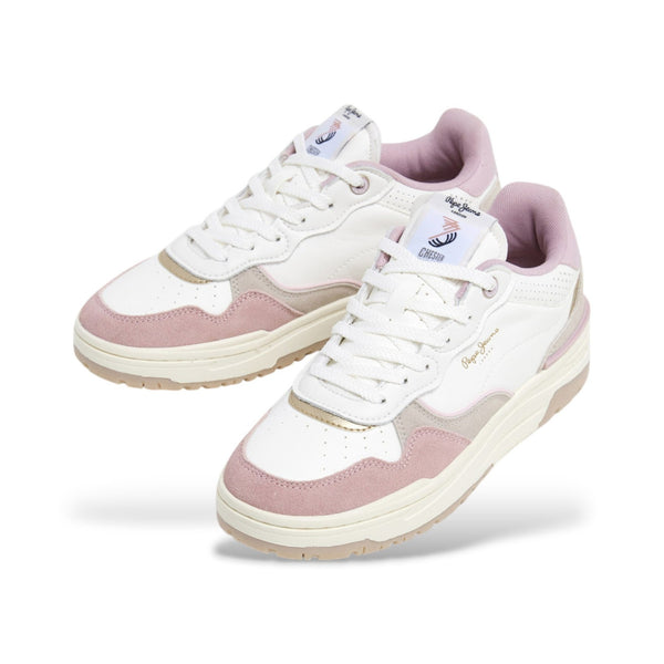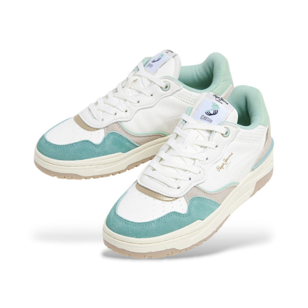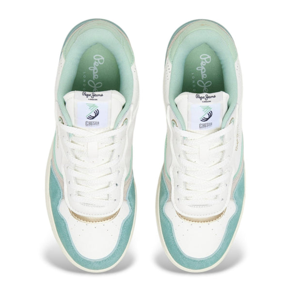 Sneakers basse alla moda chester ivy w con suola a coppa realizzate in combinazioni di materiali di alta qualità con tomaia in pelle riciclata, pezzi a contrasto di colore, logo monogramma "p" sul tallone colorato, logo 1973 su un piccolo pezzo laterale colorato, suola in gomma bicolore personalizzata ad alto volume, microforature sulla punta, sottopiede estraibile e termoformato, occhiello personalizzato e logo classico sul lato.