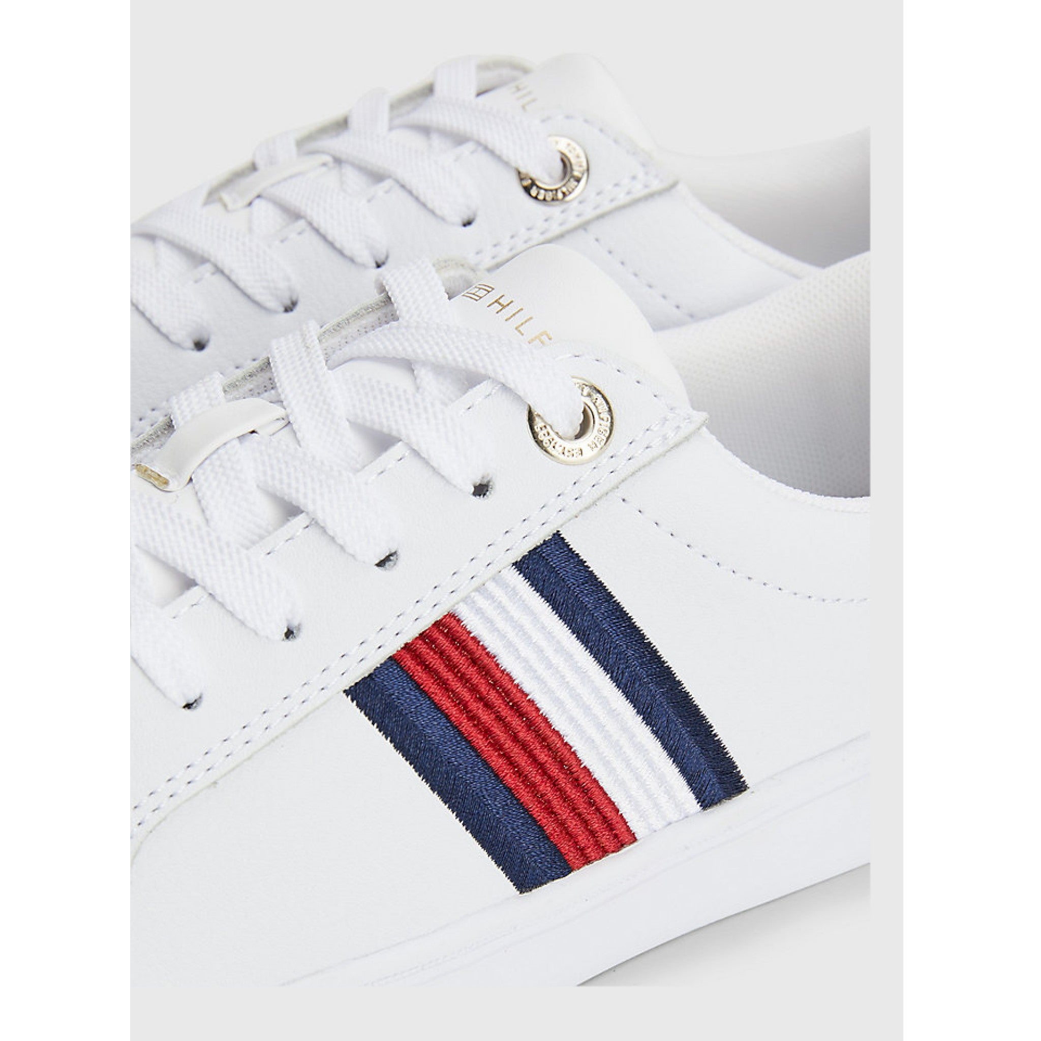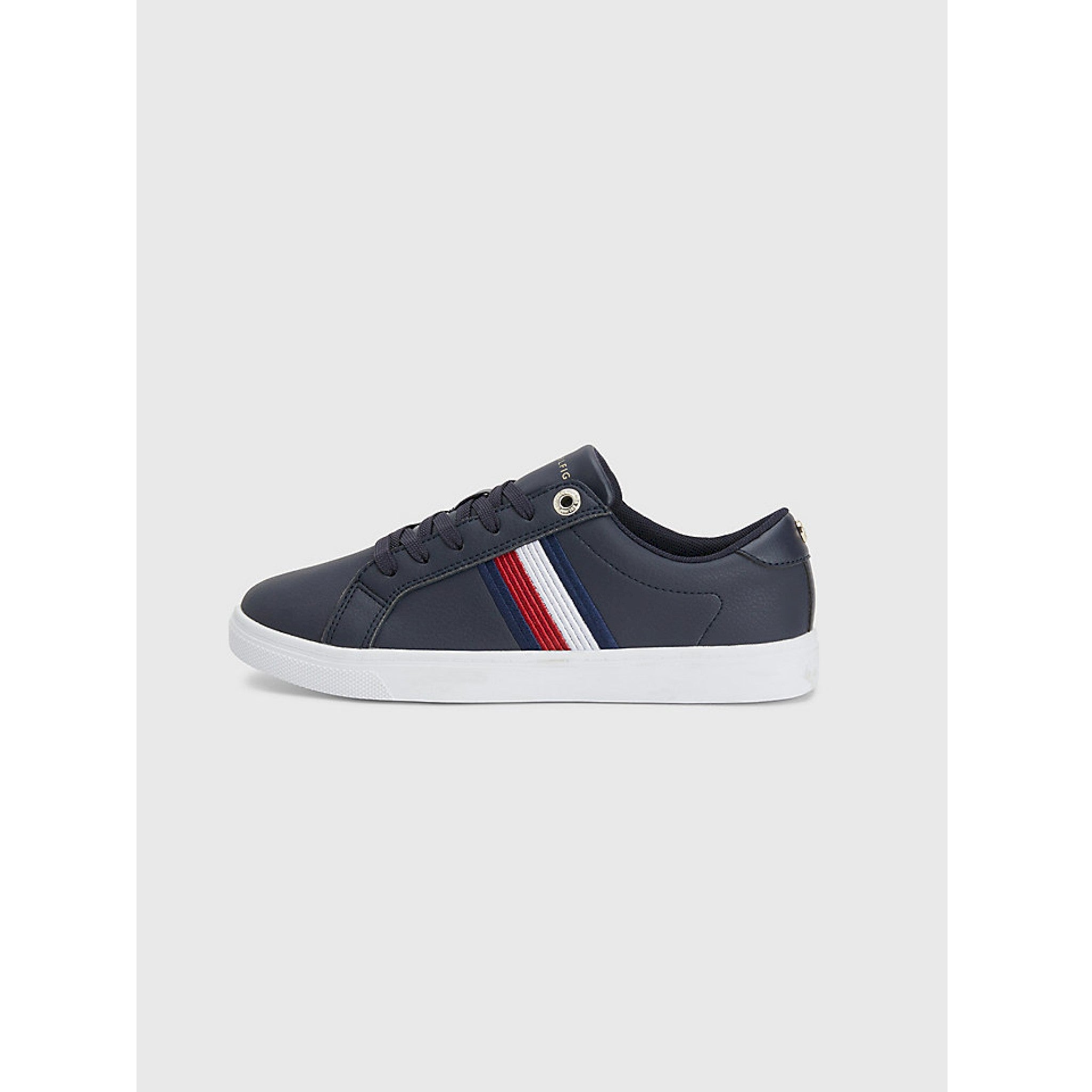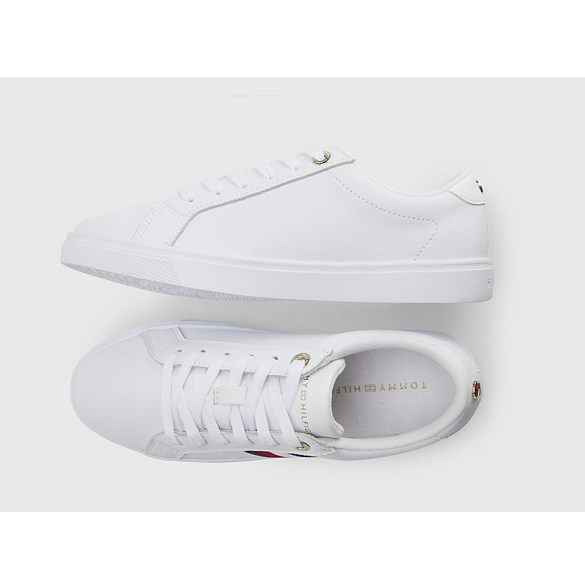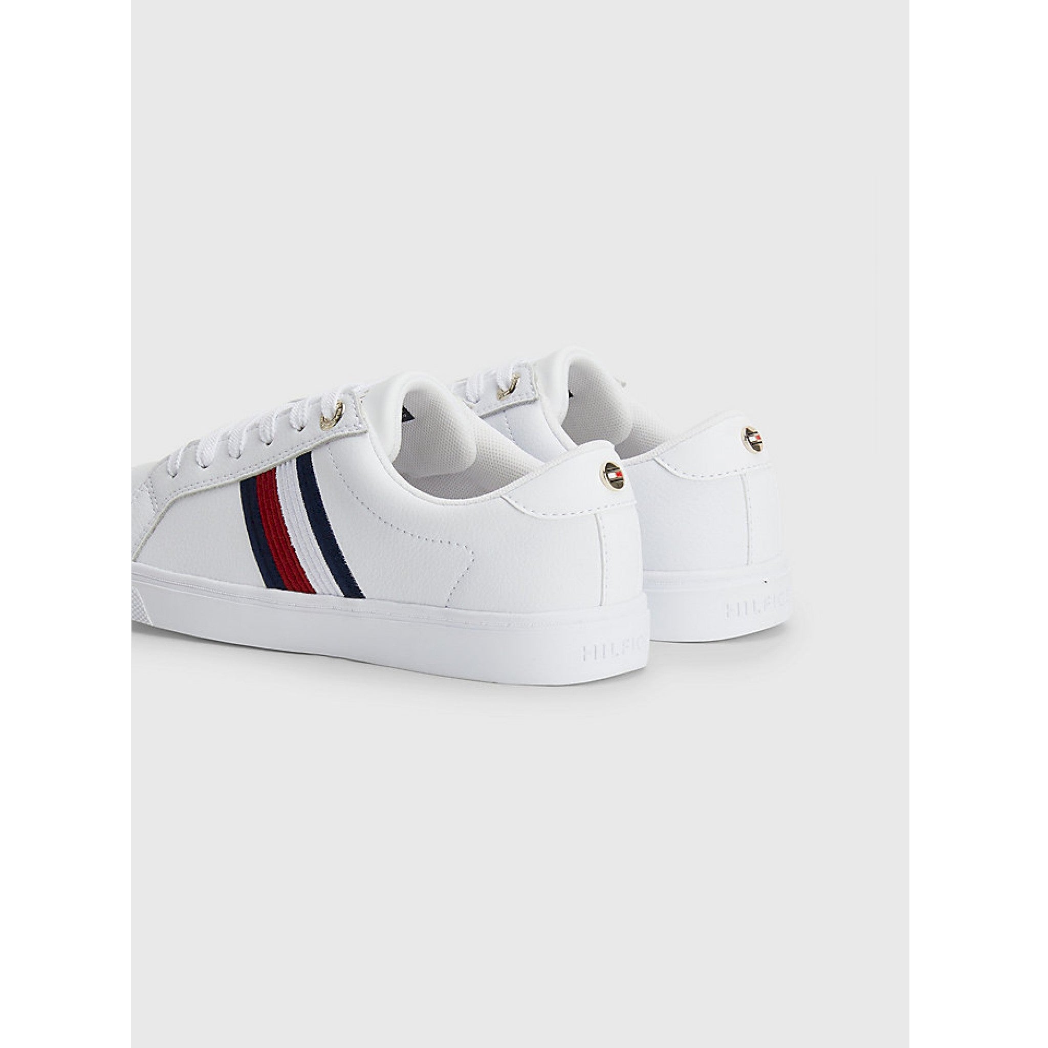 Le eleganti sneakers in pelle con suola preformata abbinano il moderno stile minimalista a dettagli iconici, come i vivaci colori tommy hilfiger che decorano il lato.