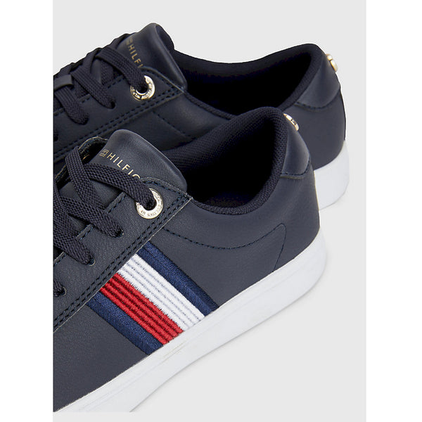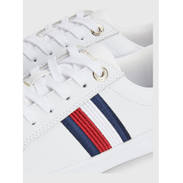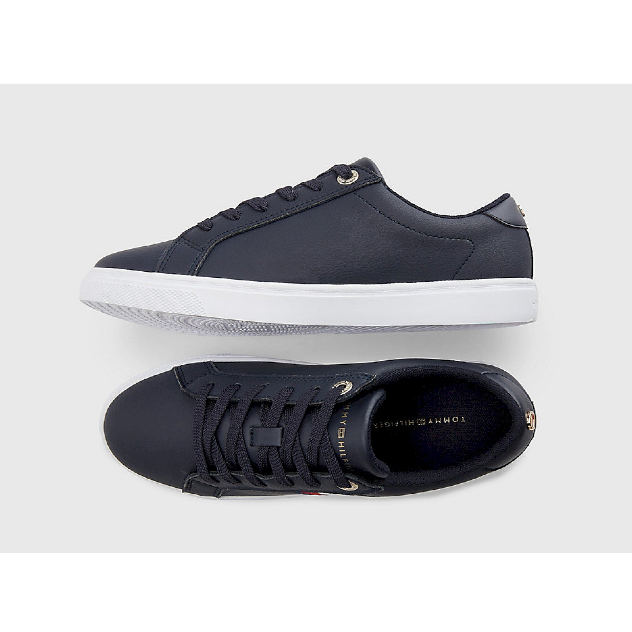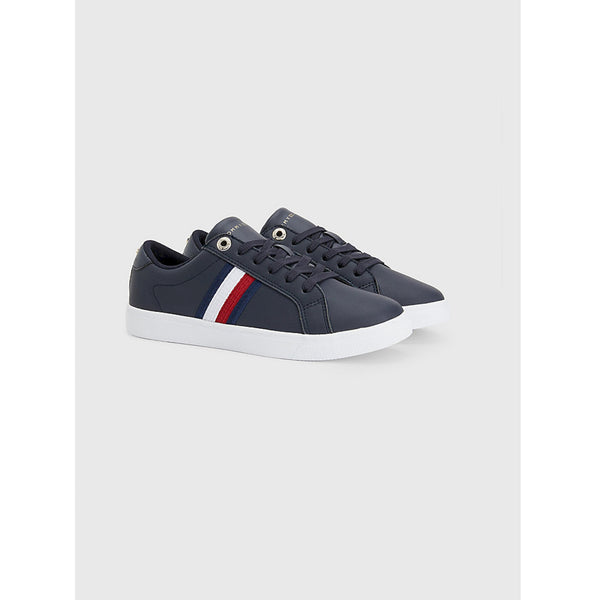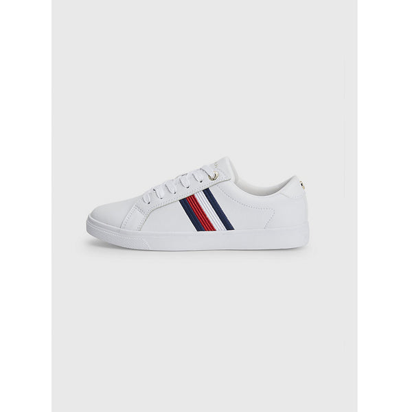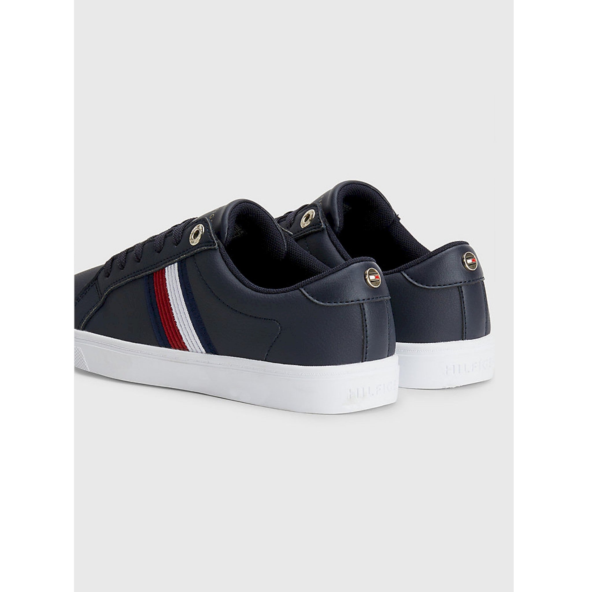 Le eleganti sneakers in pelle con suola preformata abbinano il moderno stile minimalista a dettagli iconici, come i vivaci colori tommy hilfiger che decorano il lato.
