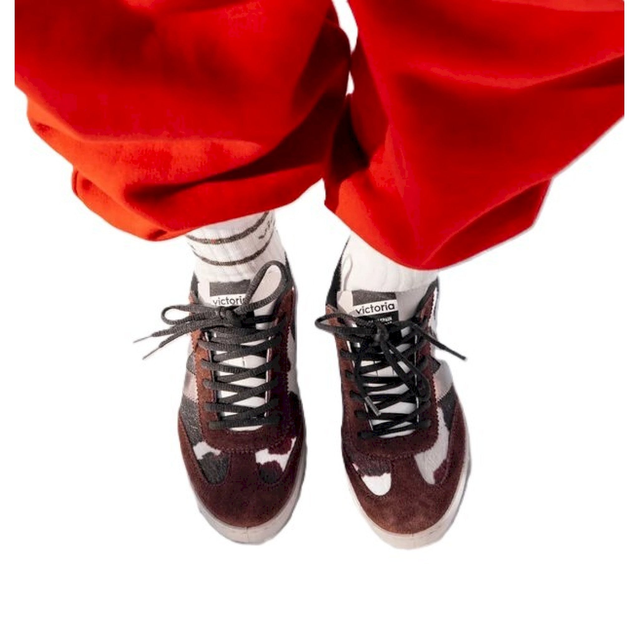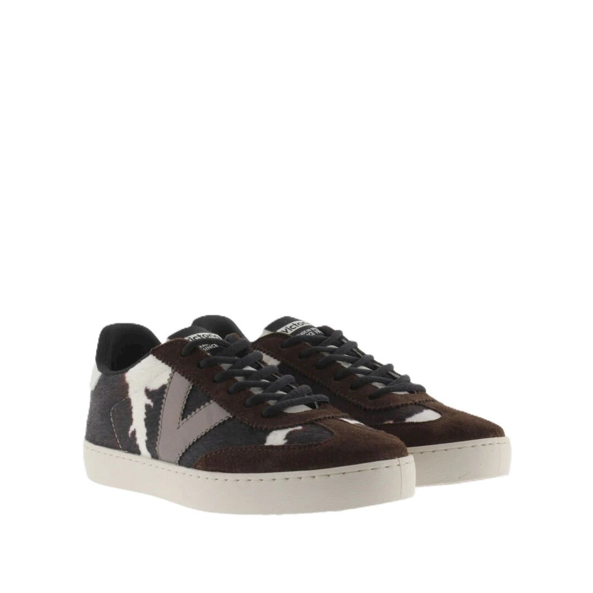Sneakers da donna con stampa animalier , realizzate in spagna, con inserti in suede tono su tono. dettaglio a v metallizzato sul lato e linguetta colorata sul tallone. lacci rotondi neri e nuovo design della punta in stile ciclista. la suola leggermente tostata è realizzata con oli vegetali anziché minerali, riducendo l'impatto ambientale. presentano inoltre una soletta più ergonomica, realizzata con materiali riciclati, che offre un comfort superiore a ogni passo.