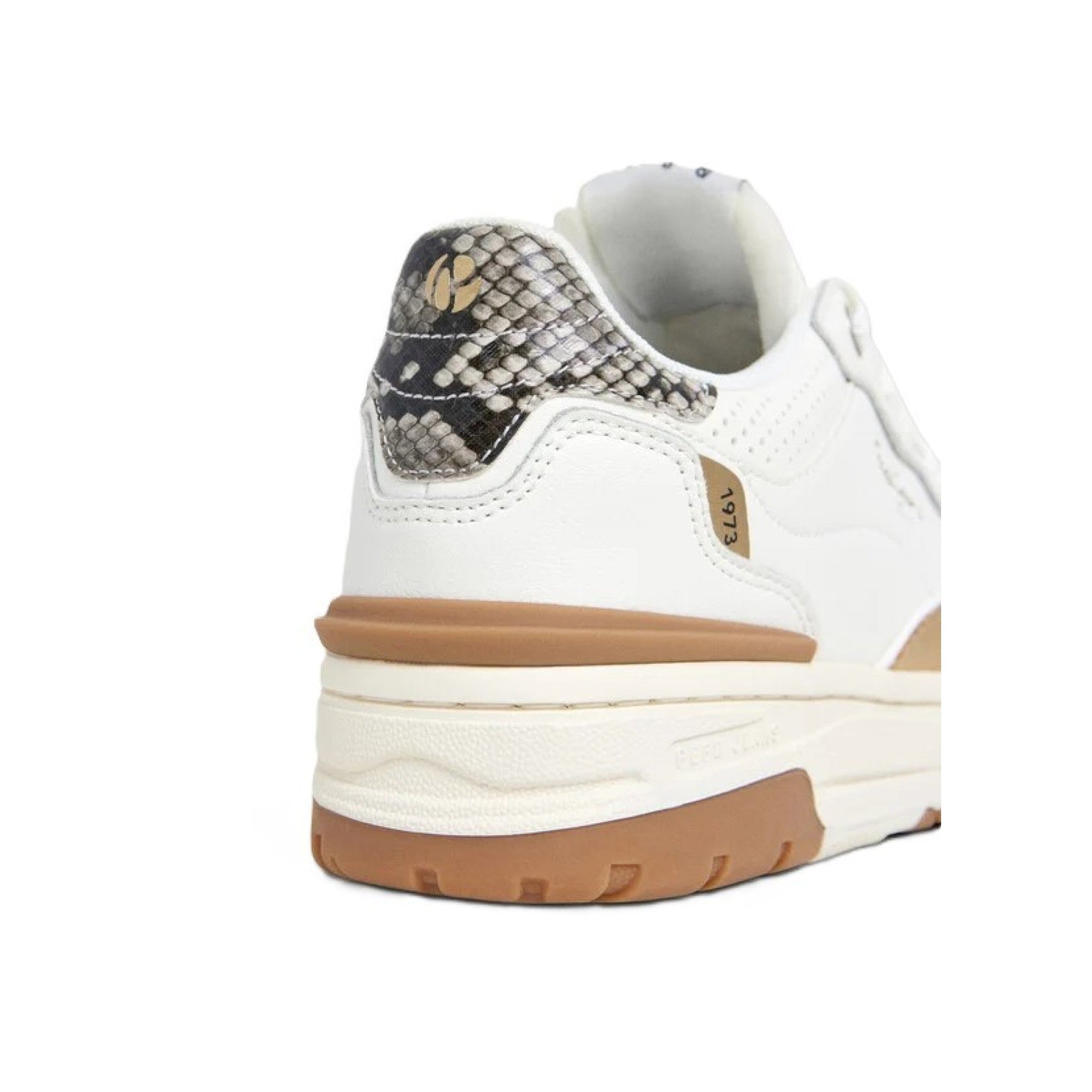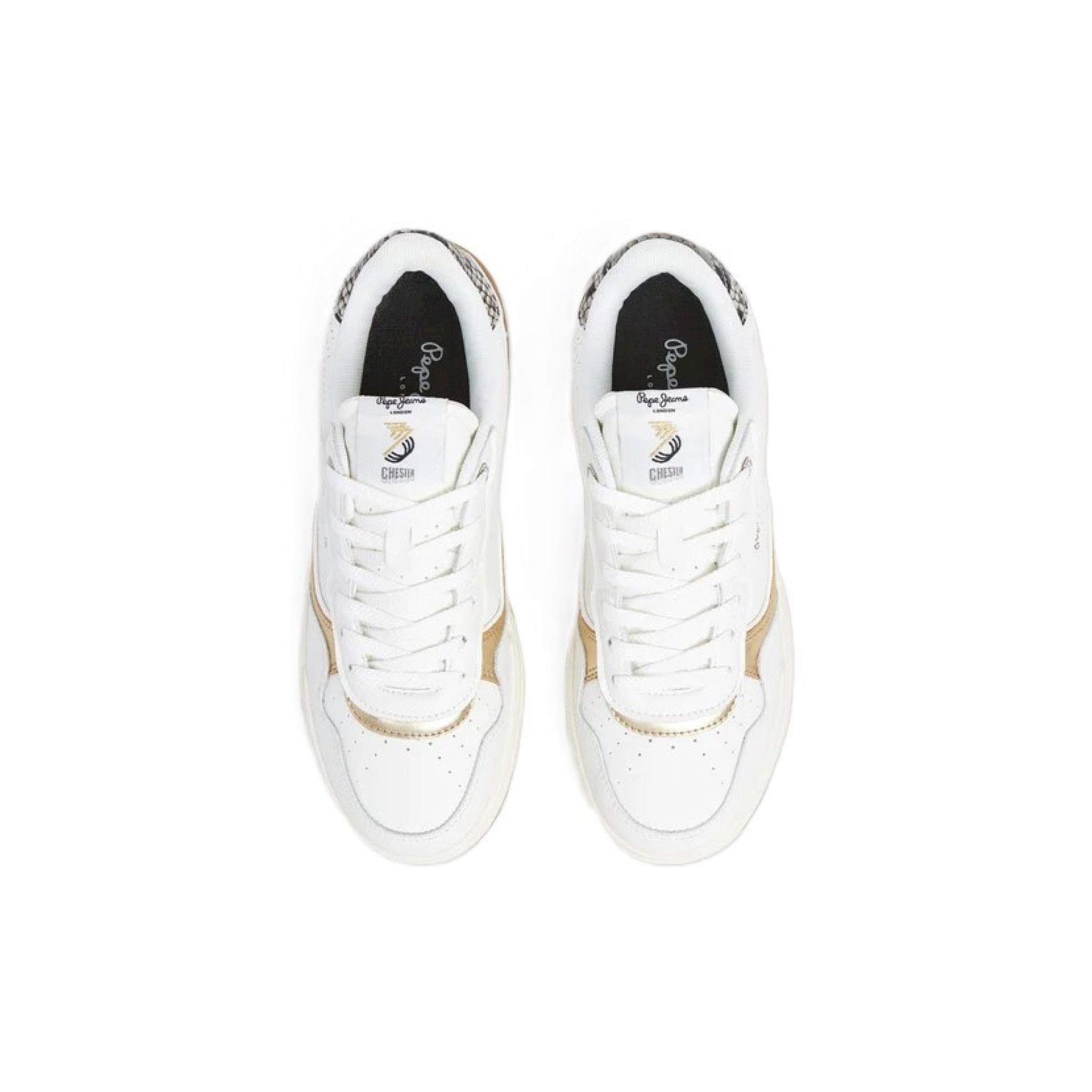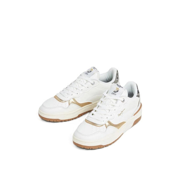- sneakers classiche in combinazione di tessuti - chiusura con lacci - inserti metallici color oro sui lati - microperforazioni sul collo del piede - soletta termoformata estraibile - logo pepejeans termosaldato sui lati - tallone con effetto squame e monogramma stampato - suola esterna in gomma bicolore