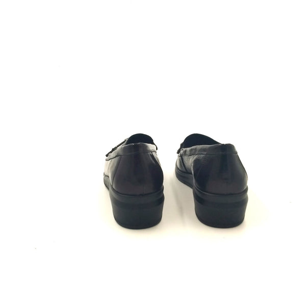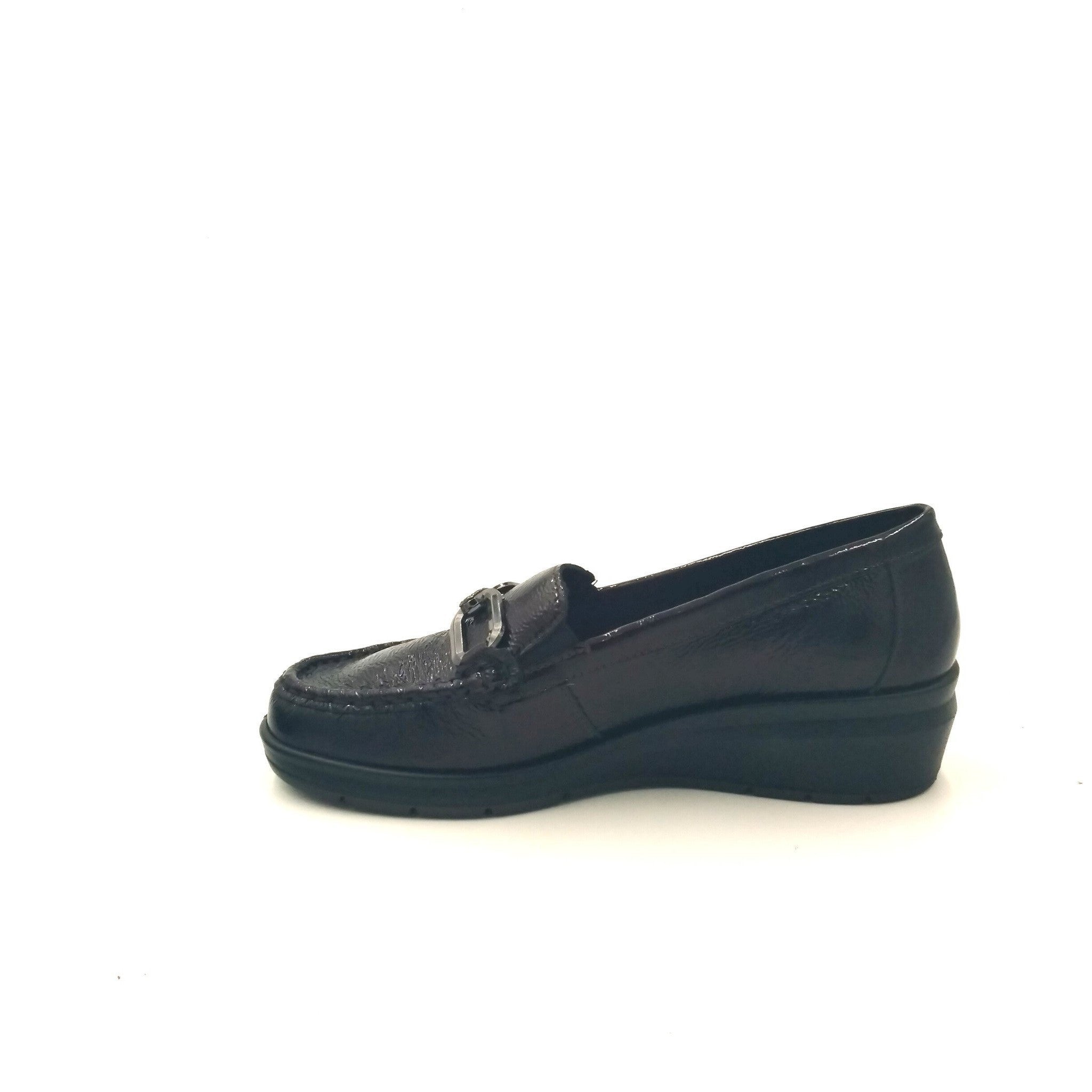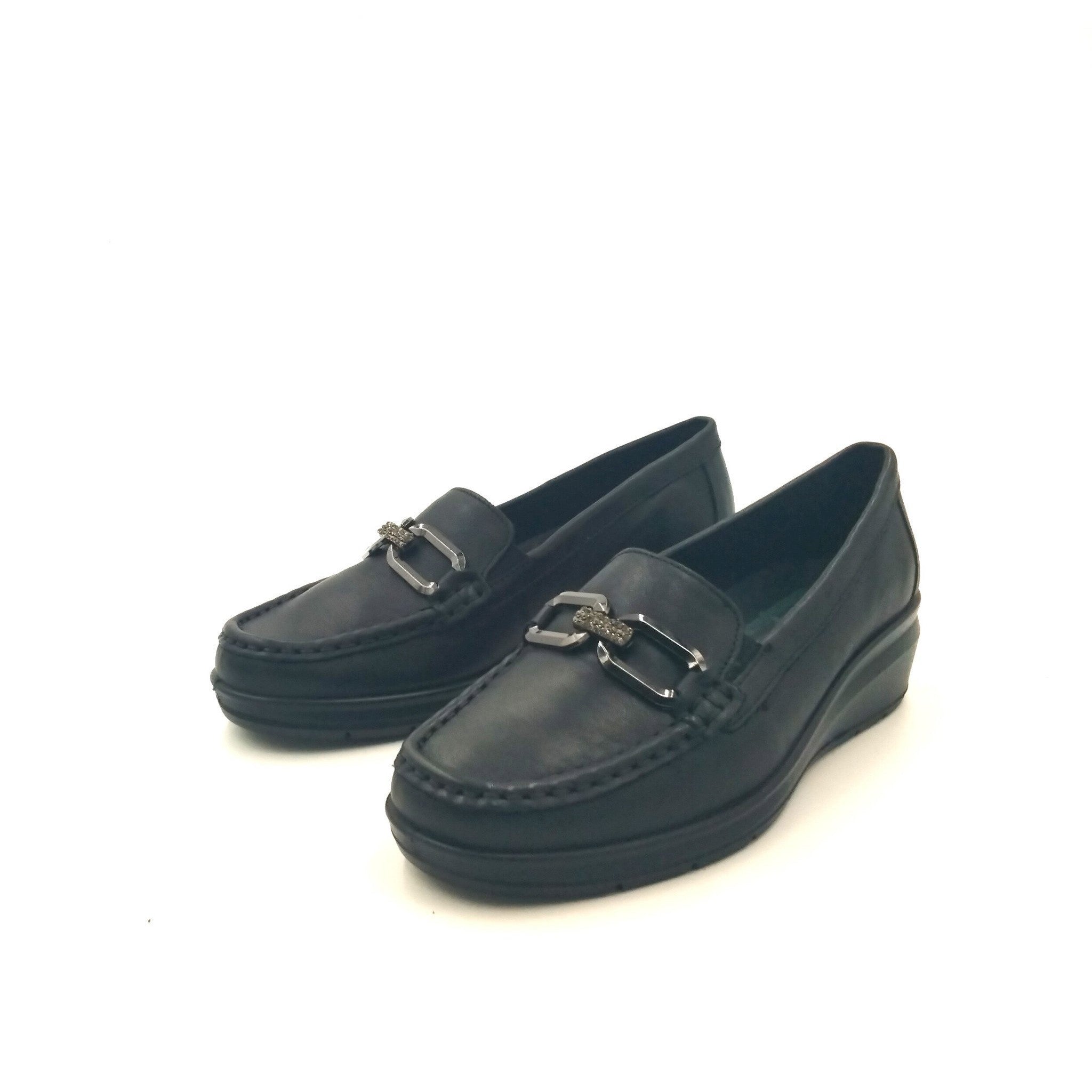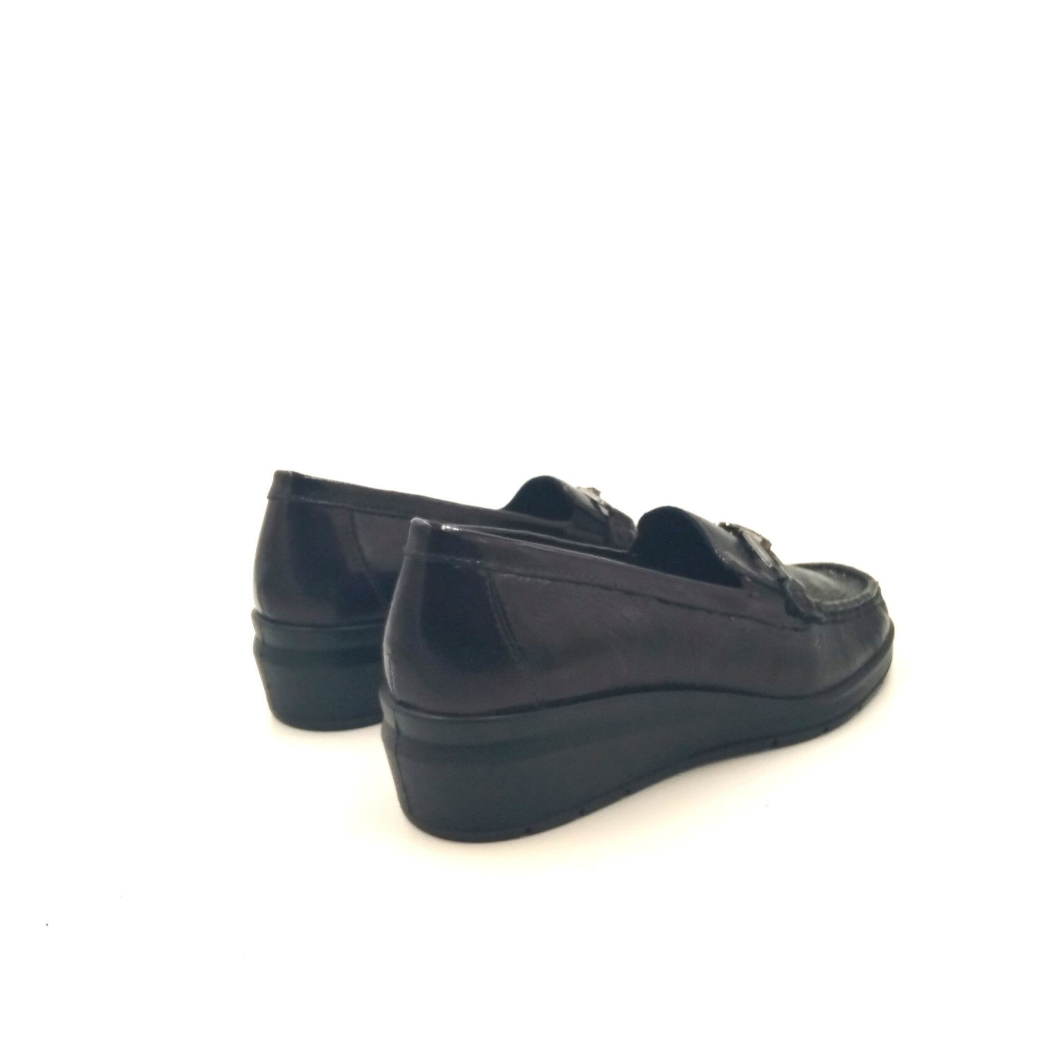 Mocassini in pelle con leggera zeppa per una calzata molto comoda. morsetto ornamentale, vaschetta cucita ed elastici per facilitare la calzata. fodera e sottopiede in pelle per massima igiene. sottopiede memory foam per ammortizzare gli urti della camminata e garantire massimo sollievo al piede.