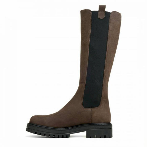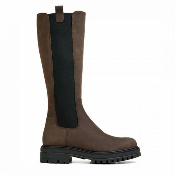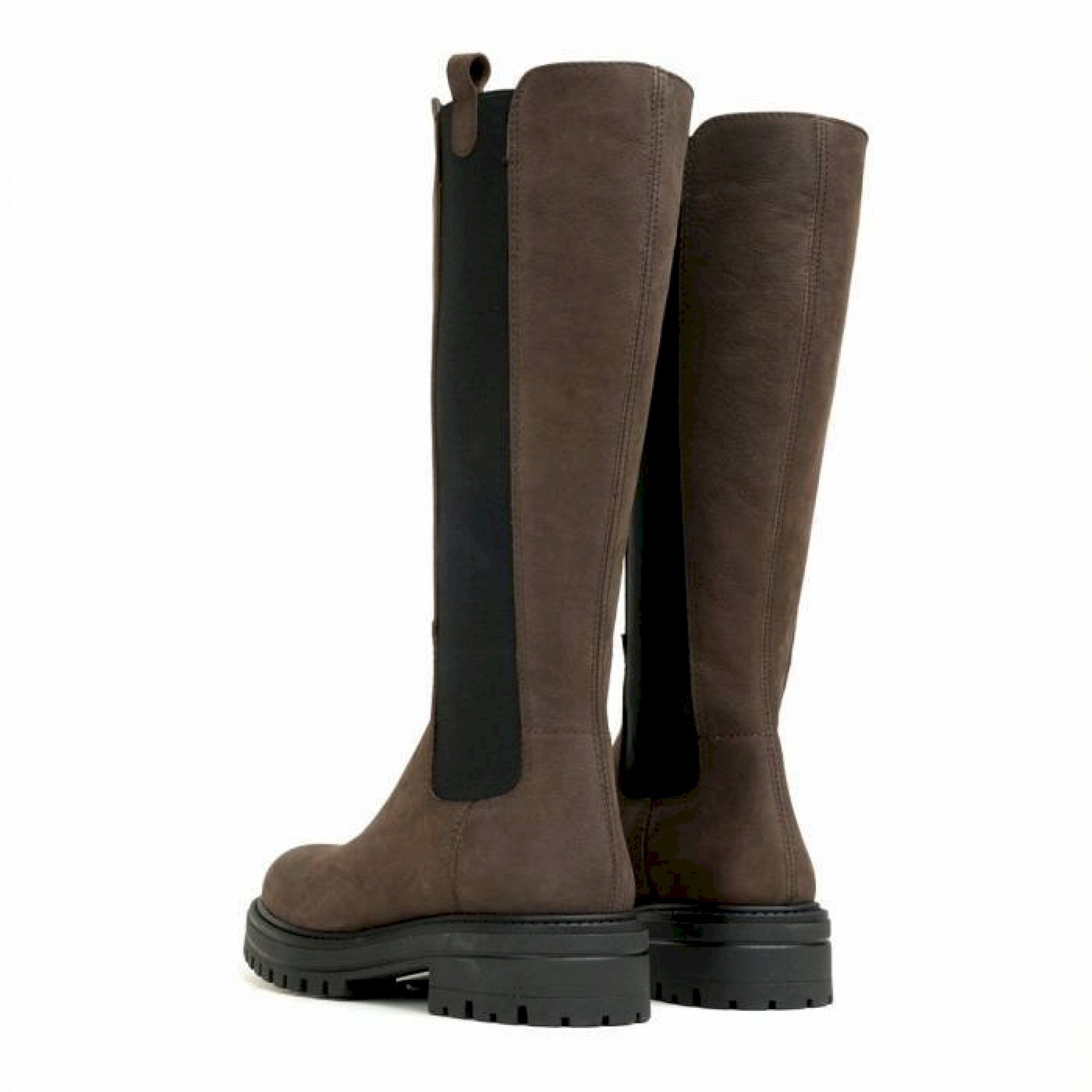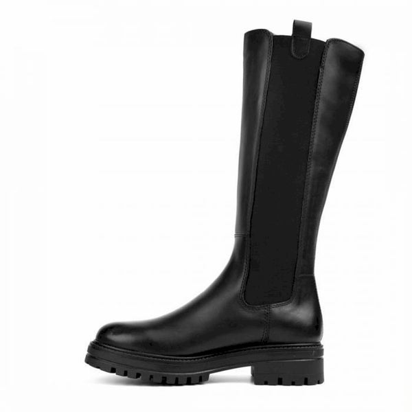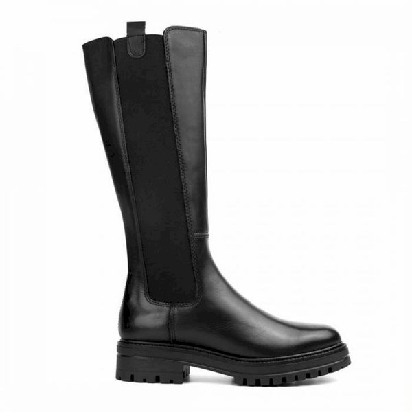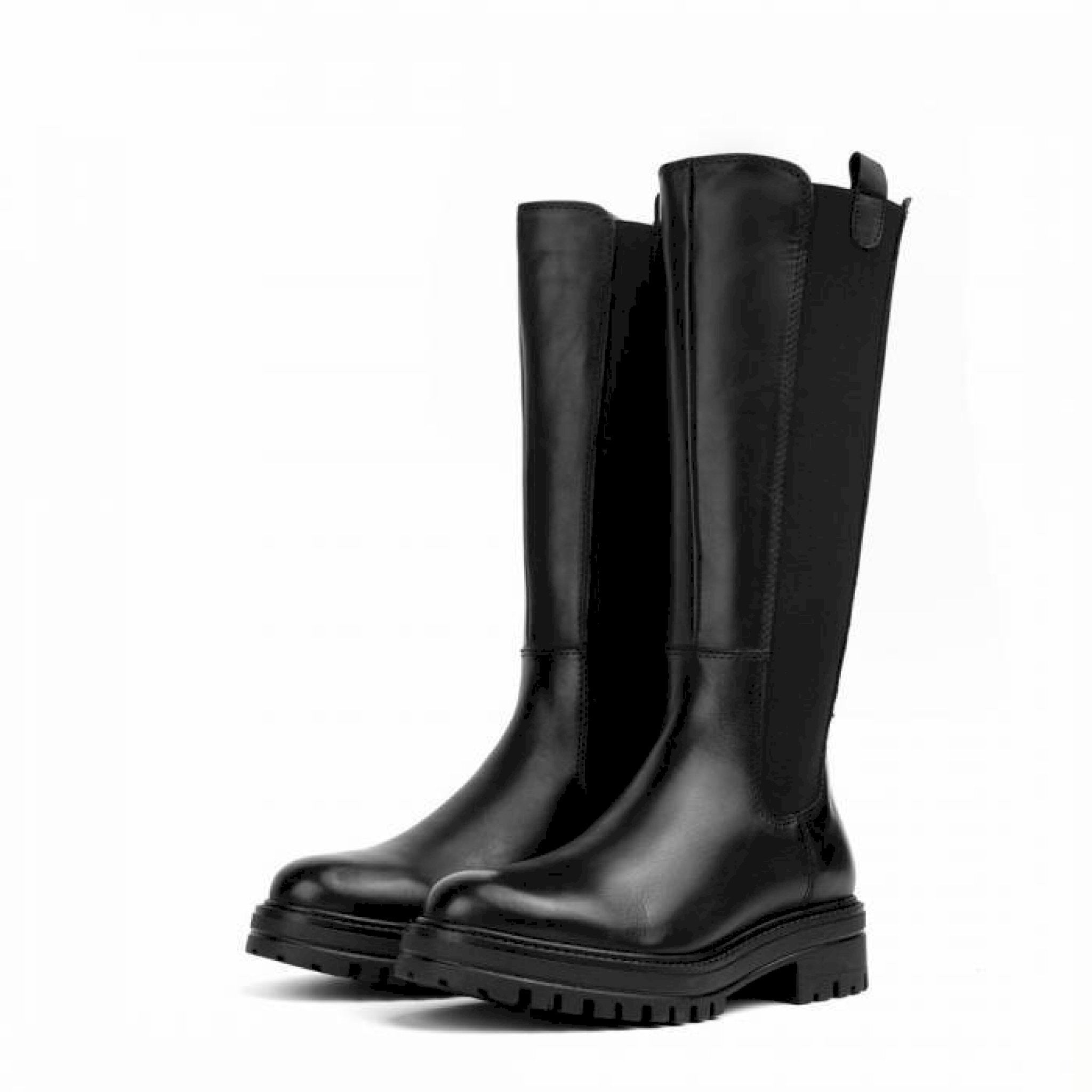 Stivale in pelle nera con bande laterali elasticizzate, staffette pull up e fondo 4 cm. altezza fondo-gambale: 34 cm