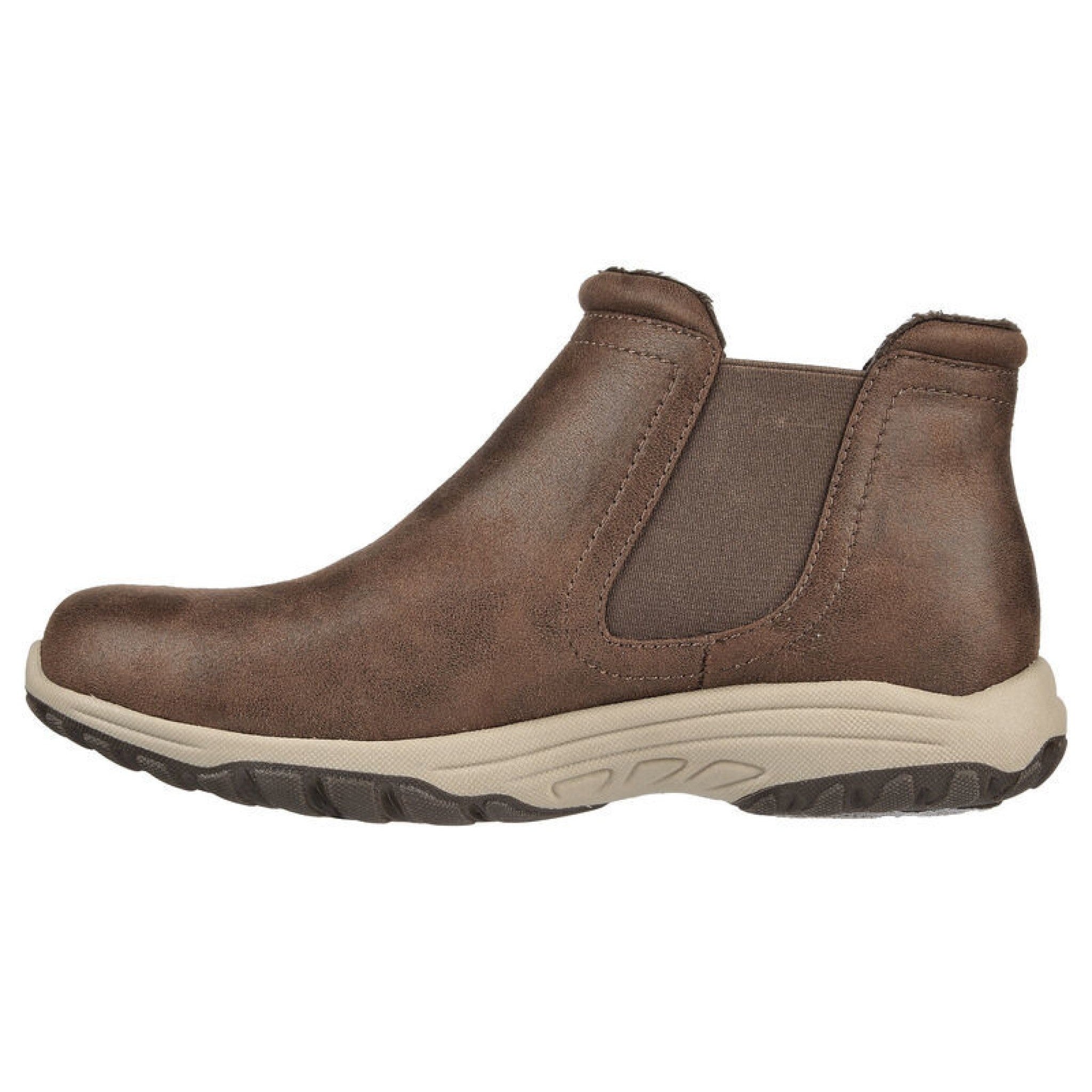 Prova il comfort a ogni passo con skechers relaxed fit®: reggae fest 2.0 - new yorker. questo stivaletto chelsea slip-on presenta una tomaia in materiale tecnico micropelle con una soletta ammortizzata skechers air cooled memory foam®.