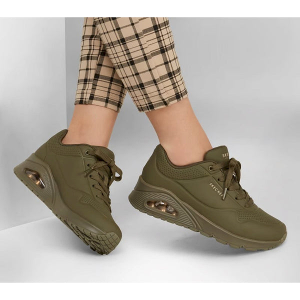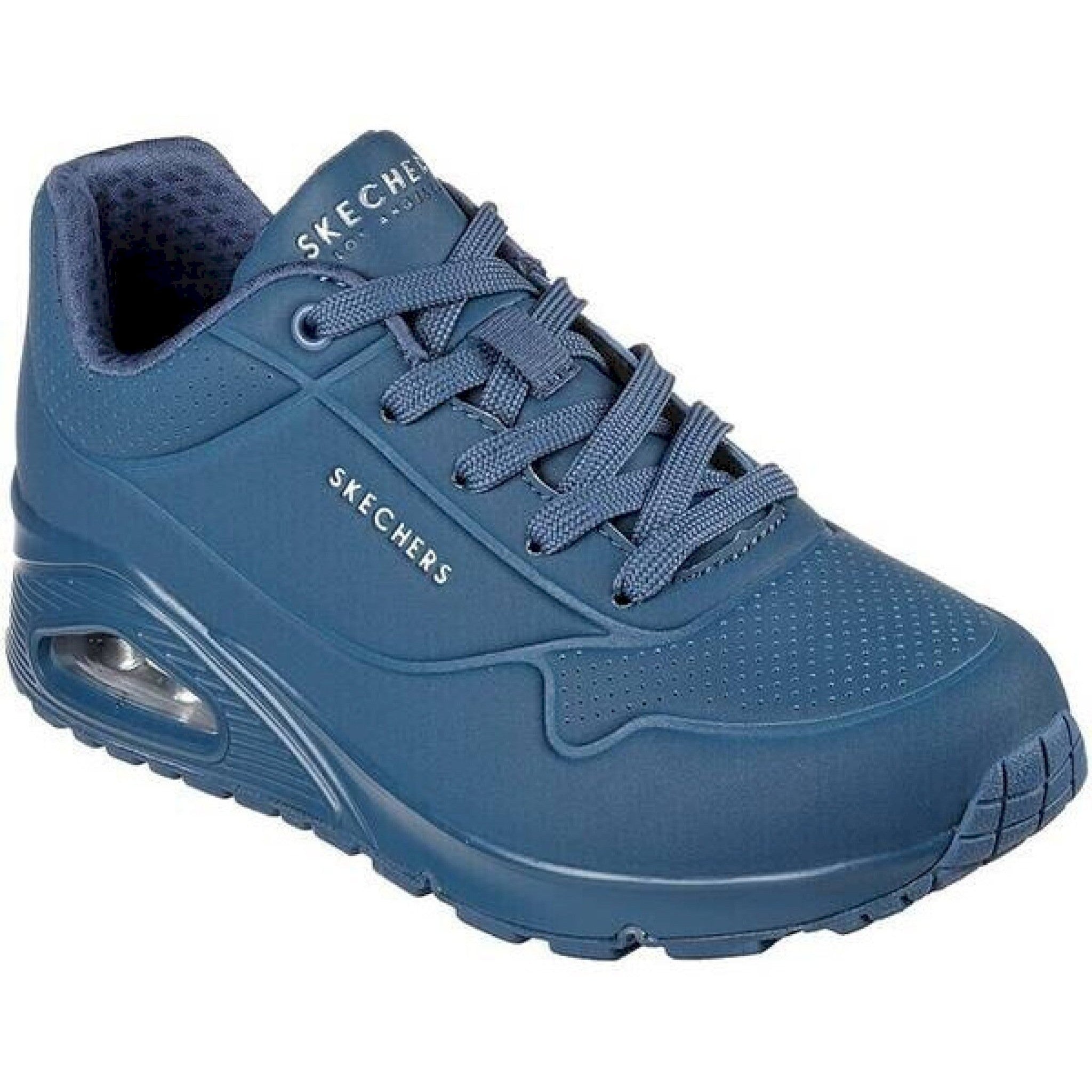 Il classico comfort con ammortizzazione viene rivisitato nella scarpa skechers street™ uno - stand on air. questo modello stringato di tendenza presenta una tomaia sintetica traforata liscia con soletta air cooled memory foam e intersuola ammortizzata ad aria con tecnologia visibile skech-air