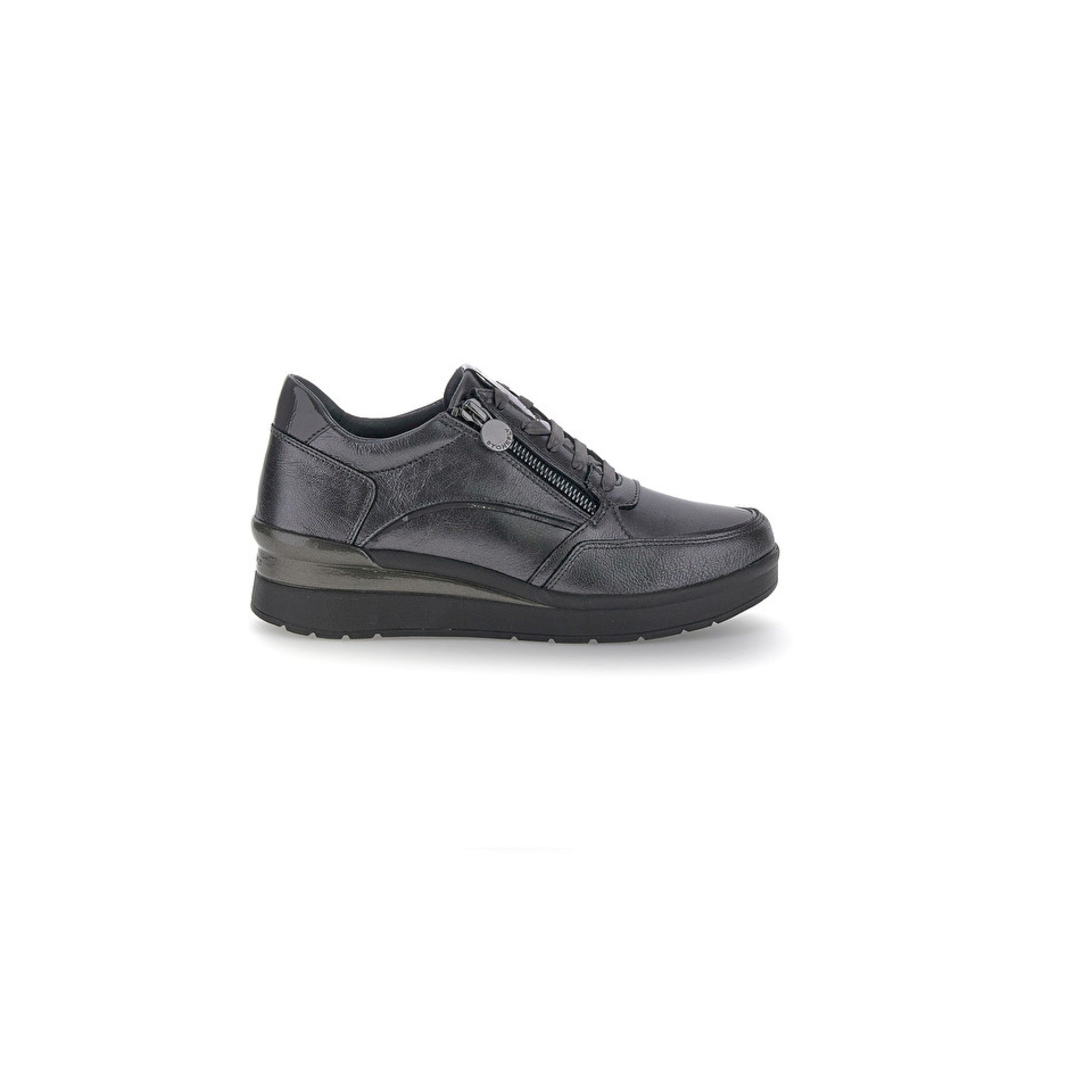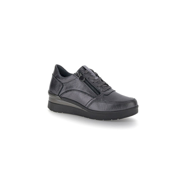 Sneaker casual da donna in pelle nappa grigia con vestibilità regular. confortevole e casual, con una tomaia ricca di dettagli e che combina diverse texture, questo modello allacciato è reso più pratico e comodo dalla zip laterale che consente una calzata rapida e facile. la tecnologia blusoft® supporta la tua camminata garantendo massimo comfort e ammortizzazione. suola in eva, altezza tacco (cm): 5.