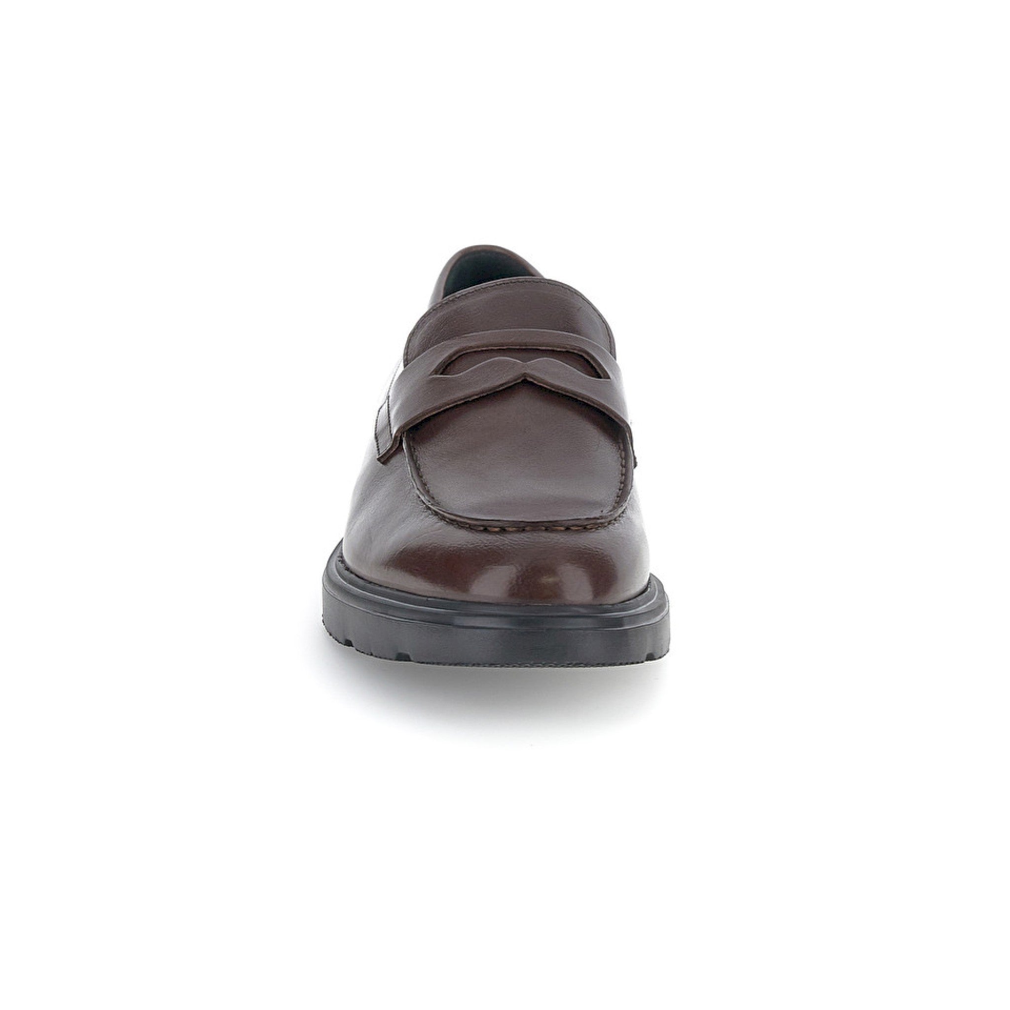 Mocassino da uomo in pelle marrone con vestibilità regular. un mocassino dal look senza tempo, caratterizzato da un'eleganza classica e dettagli ispirati alla silhouette dei modelli tradizionali. questa calzatura raffinata è un vero must-have per chiunque cerchi un modello sofisticato che aggiunga un tocco di classe ed eleganza a ogni outfit. la calzatura con blusoft memory® ha un particolare plantare estraibile dotato di un inserto in memory foam nell'area del tallone che ammortizza gli urti della camminata. il plantare è costruito con uno speciale materiale con struttura a cellule aperte che assicura un'altissima traspirabilità. suola in eva, altezza tacco (cm): 3.5.