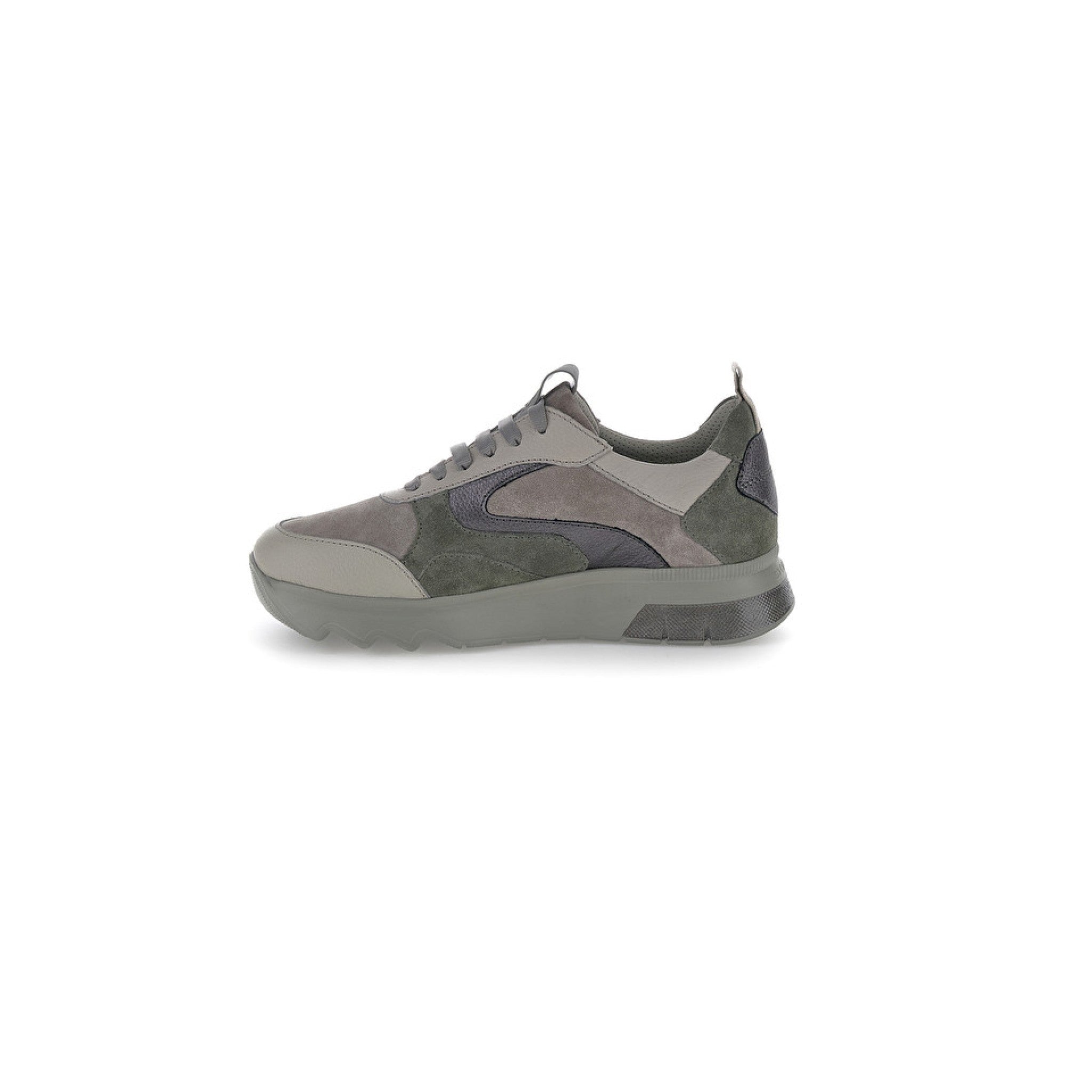 Sneaker casual da donna in pelle spazzolata grigia con vestibilità regular. la sneaker spock, caratterizzata da un comfort eccezionale e una morbidezza ineguagliabile, presenta un look moderno e sofisticato. la tomaia combina diverse nuances ton sur ton, per un'estetica armoniosa e di classe. questo design ricercato ma casual rende la sneaker ideale per chi cerca uno stile raffinato senza voler rinunciare alla comodità. perfetta per aggiungere un tocco di eleganza ai tuoi outfit quotidiani. la calzatura con blusoft memory® ha un particolare plantare estraibile dotato di un inserto in memory foam nell'area del tallone che ammortizza gli urti della camminata. il plantare è costruito con uno speciale materiale con struttura a cellule aperte che assicura un'altissima traspirabilità. suola in eva, altezza tacco (cm): 4.