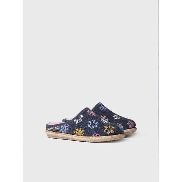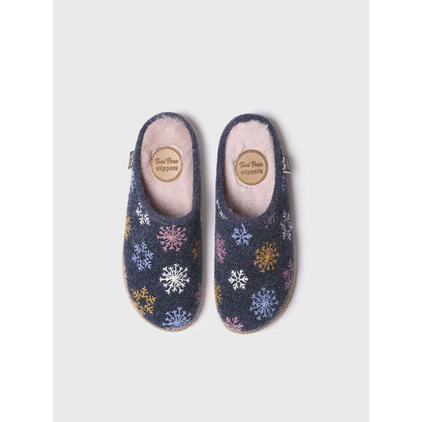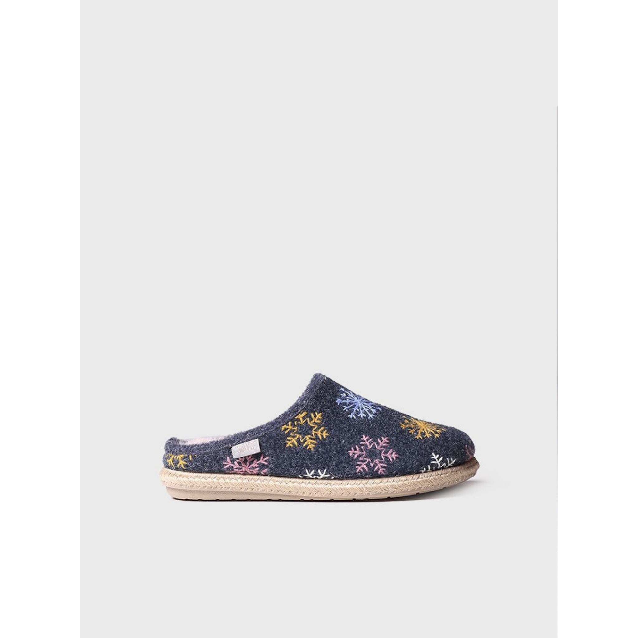 Deli- cp di toni pons. pantofole aperte da donna realizzate in feltro con toni tinta unita e ricami invernali. l’interno è foderato con morbida pelliccia sintetica. la suola è piatta, alta 1 cmrealizzata in treccia in iuta e gomma. dispone di una soletta estraibile con una zeppa di 2,5 cm nella parte del tallone che si collega alla suola esterna e conferisce alla pantofola un totale di 3,5 cm di altezza. questo modello si adatta alla taglia comune; se sei indeciso tra due taglie ti consigliamo di scegliere la taglia più piccola. sconsigliamo il lavaggio in lavatrice. leggi le indicazioni di lavaggio per sapere come fare.