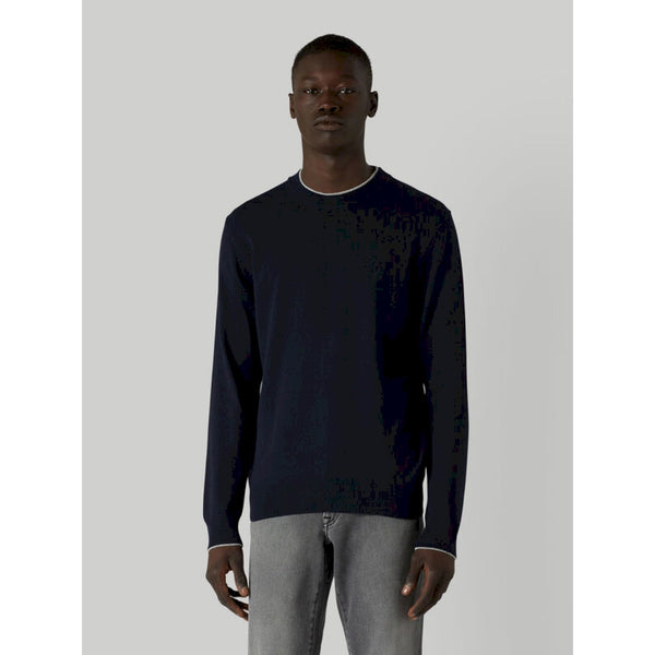 Pullover girocollo realizzato in filato di mista lana e cashmere tinta unita. lo stile basic del modello è impreziosito dal dettaglio monogram trussardi ricamato sul petto nelle stesse tonalità, mentre la vestibilità regular lo rende comodo e piacevole da indossare. rifinito con collo, polsi e bordo lavorati a costine.