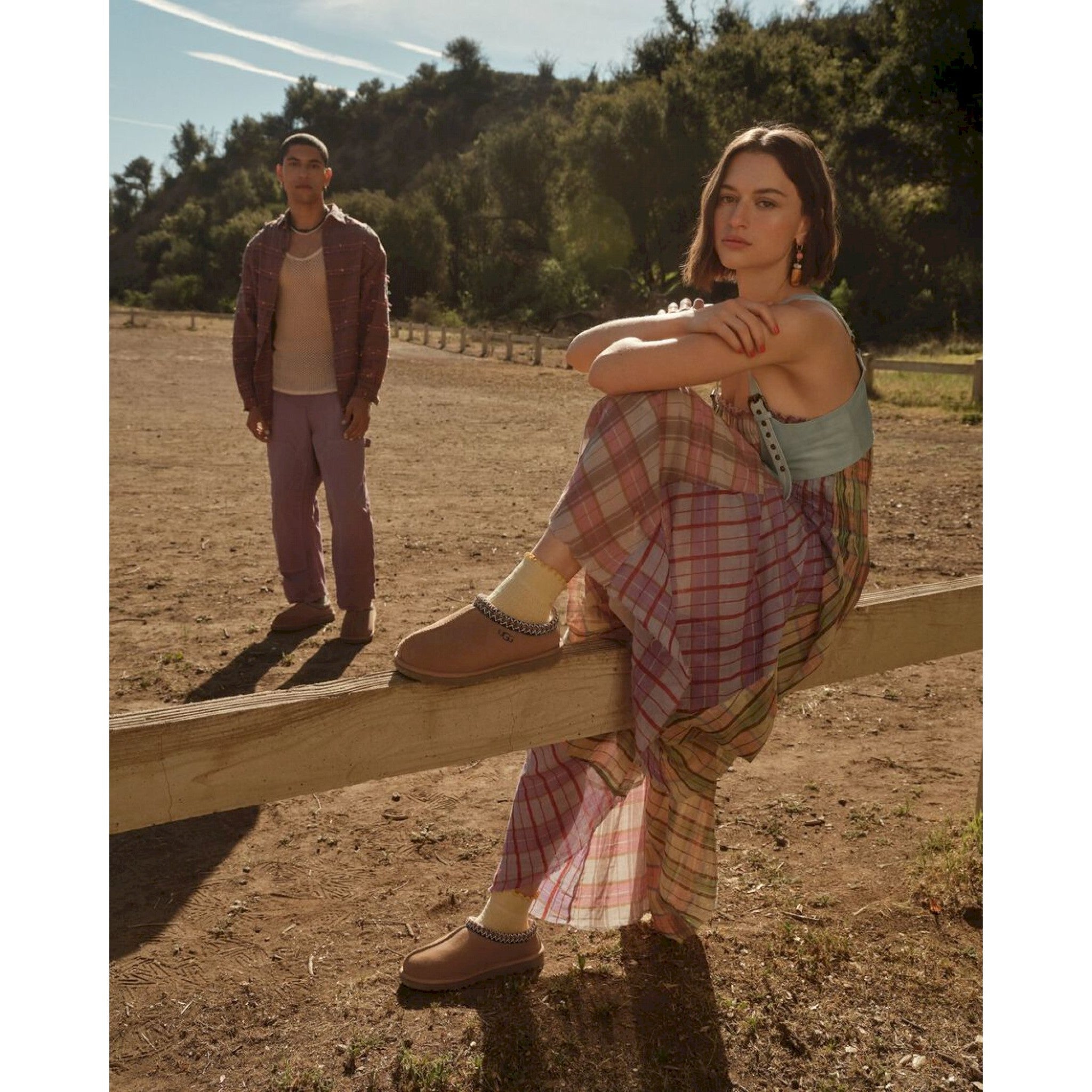 La nostra apprezzata tasman è una ciabatta per tutte le occasioni ed è dotata della stessa suola leggera e durevole dello stivale classic, che ti permette di indossarla sia in casa che fuori. foderata in morbida lana naturale, è realizzata in soffice camoscio, con una treccia ricamata e una pratica silhouette da scarpa slip on. abbinala a jeans di gusto maschile e maglione. questo prodotto è stato realizzato in uno stabilimento che supporta le donne nella nostra catena di distribuzione con l’aiuto di herproject, un’iniziativa collaborativa che coinvolge marchi come il nostro per promuovere la consapevolezza e l’istruzione delle donne sul luogo di lavoro.