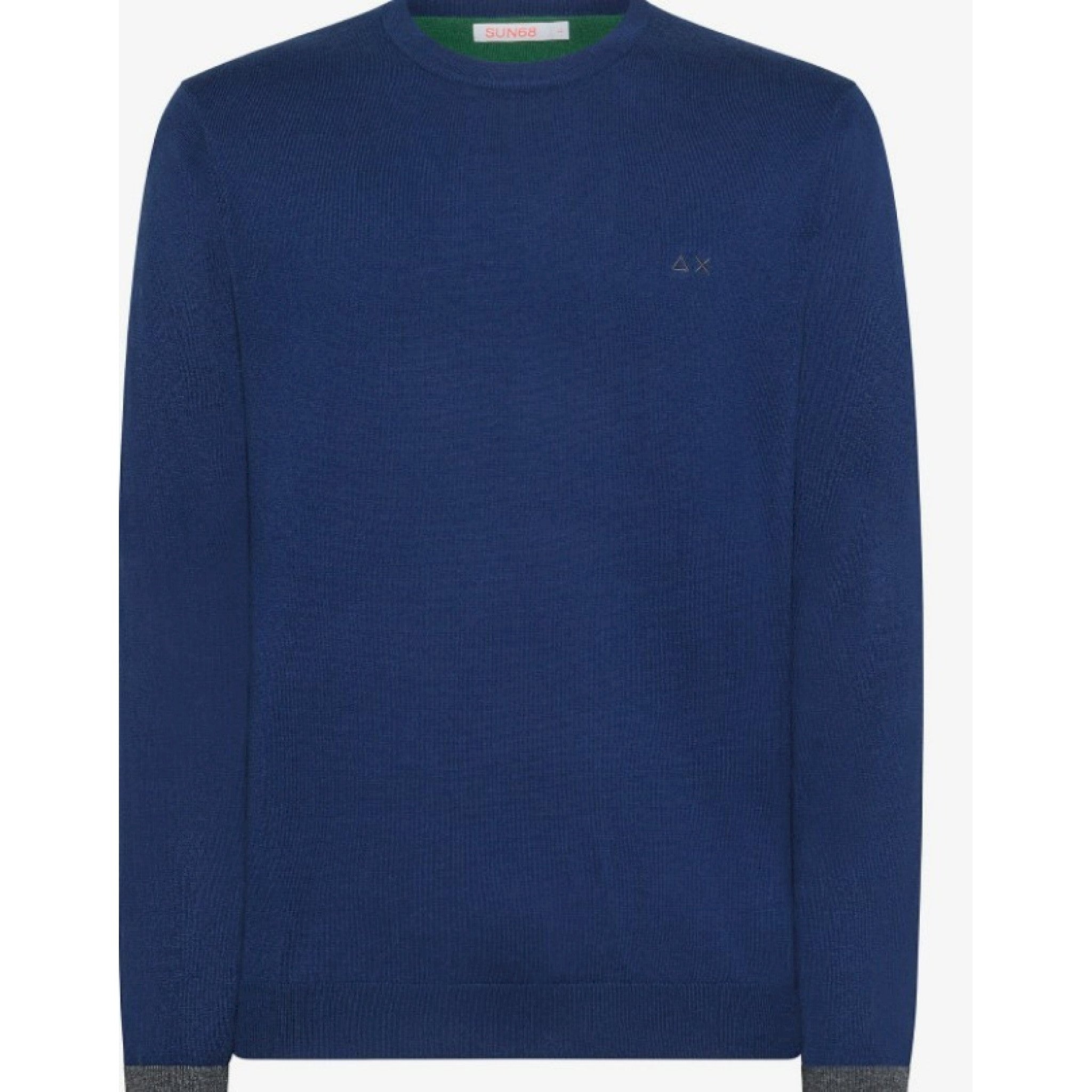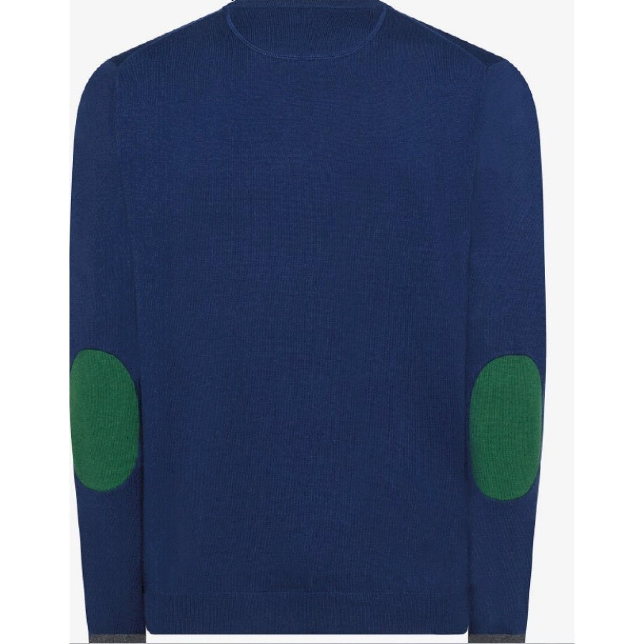 Girocollo maglia pettinata in lana merinos e cotone con toppe e bordi maniche in contrasto