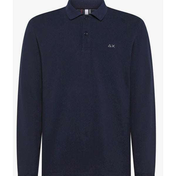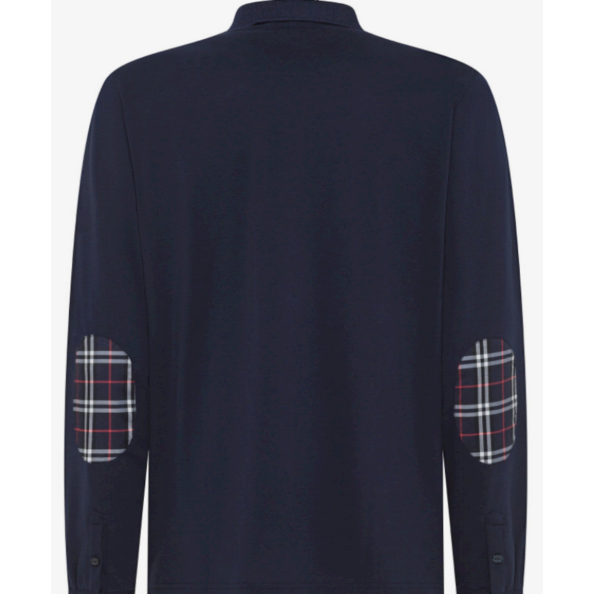 Polo manica lunga 2 bottoni con toppe gomiti in contrasto,
