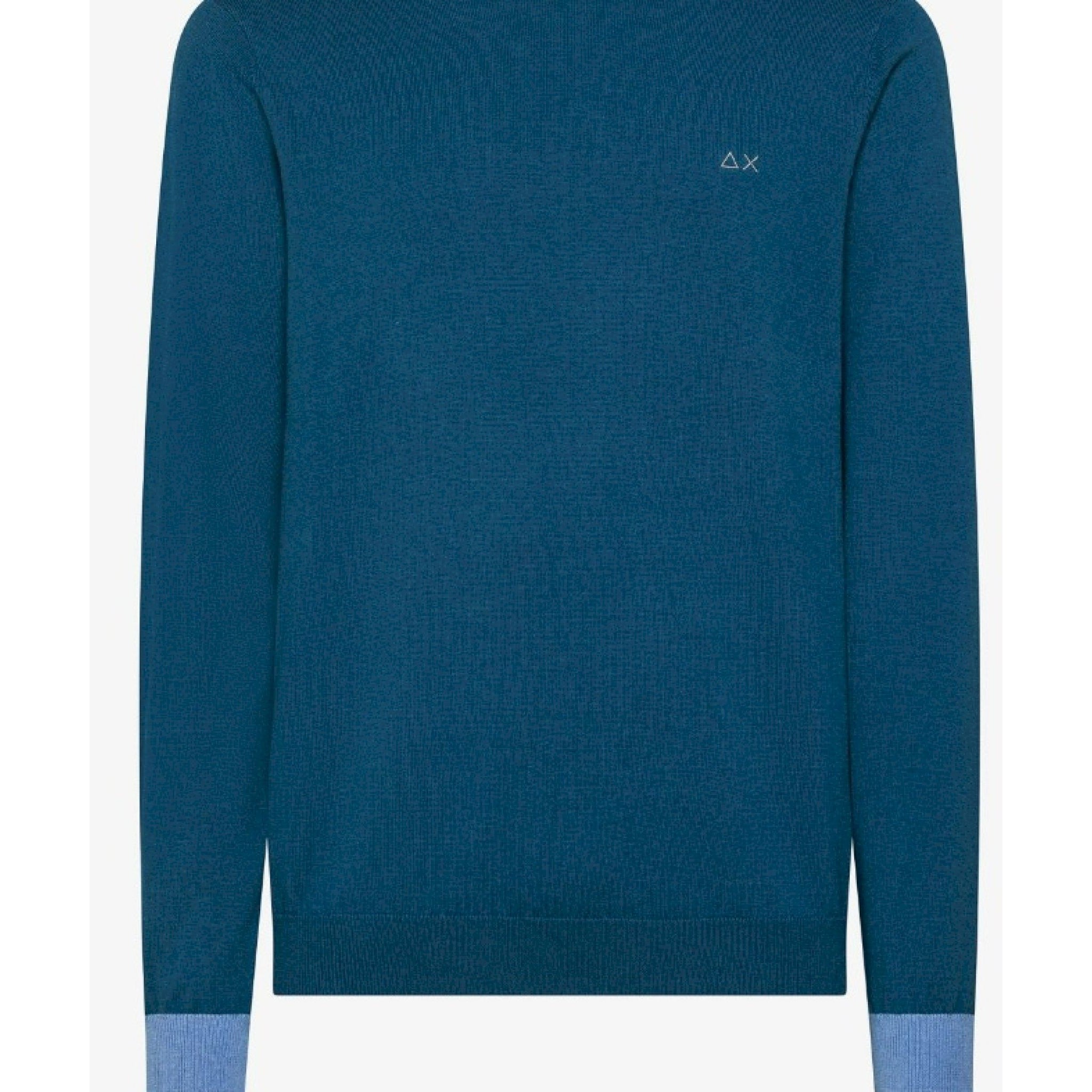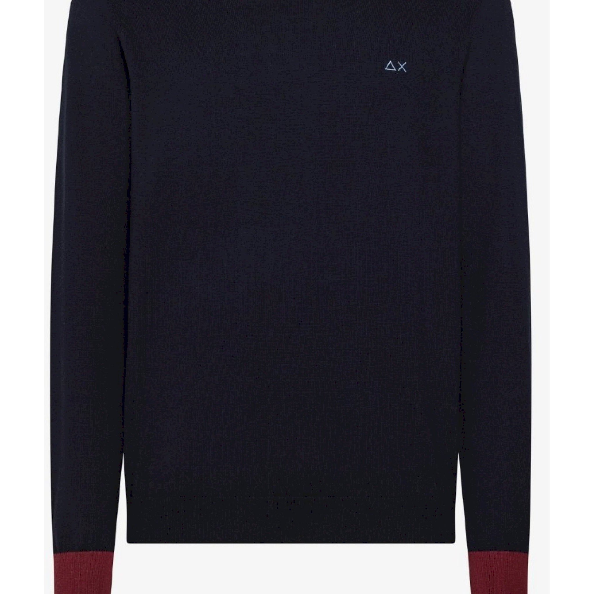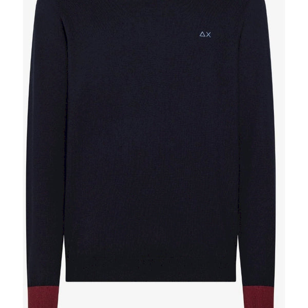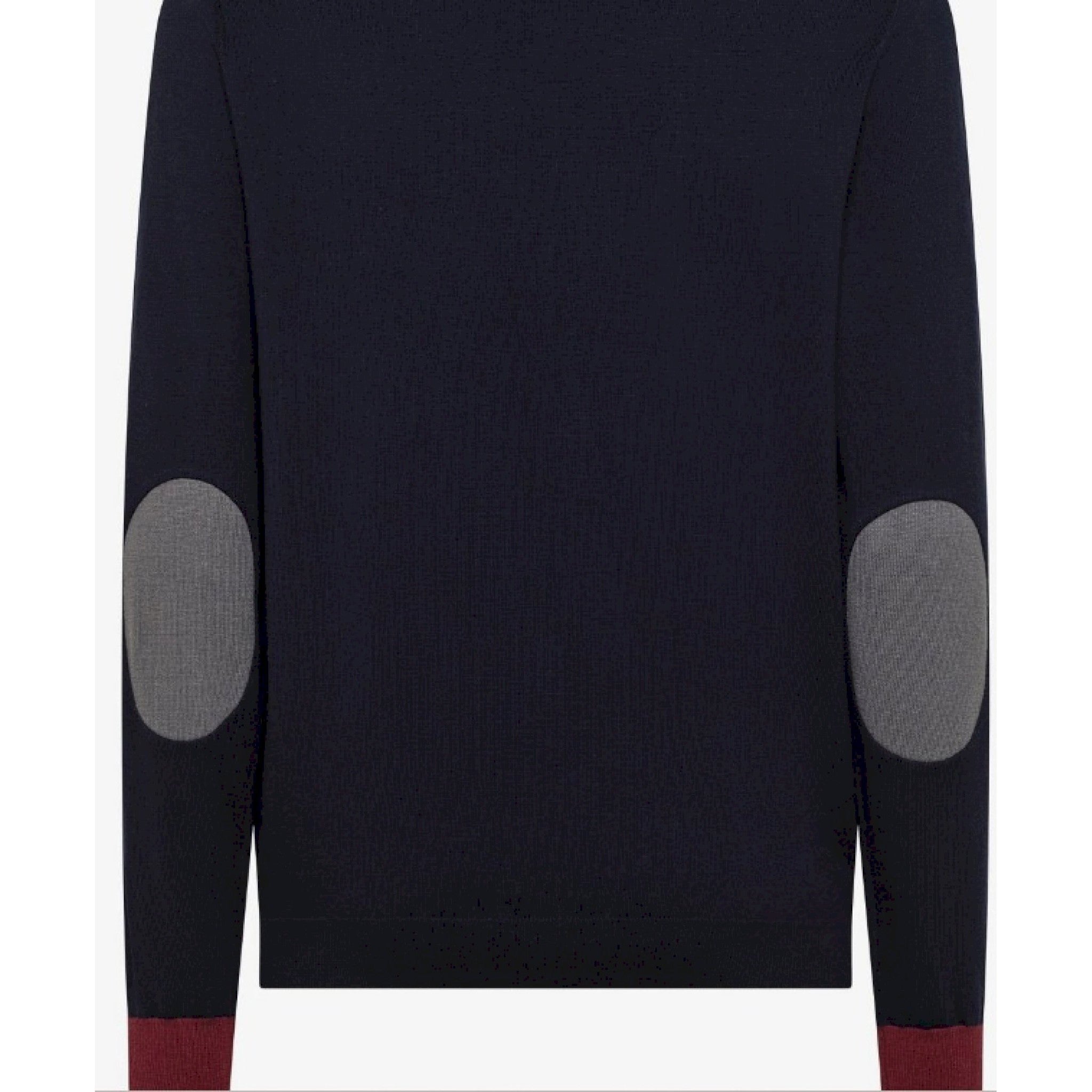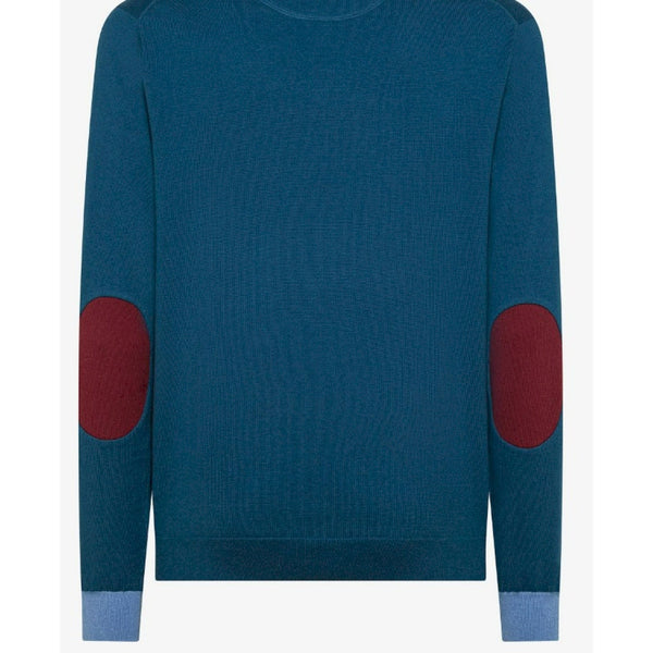Girocollo maglia pettinata in lana merinos e cotone con toppe e bordi maniche in contrasto