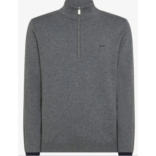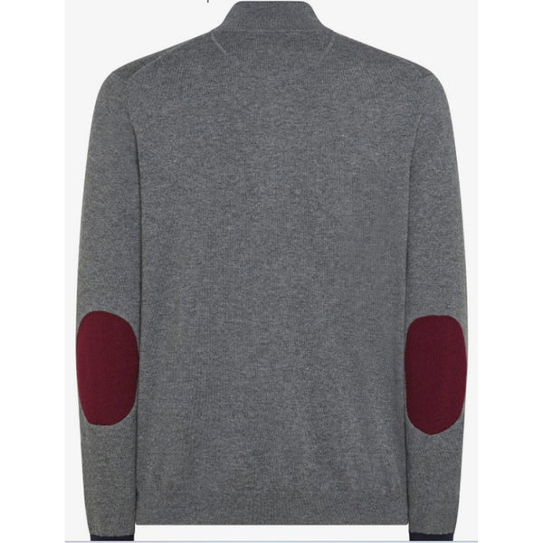 Maglione 1/2 zip con toppe e polsini in contrasto di colore.