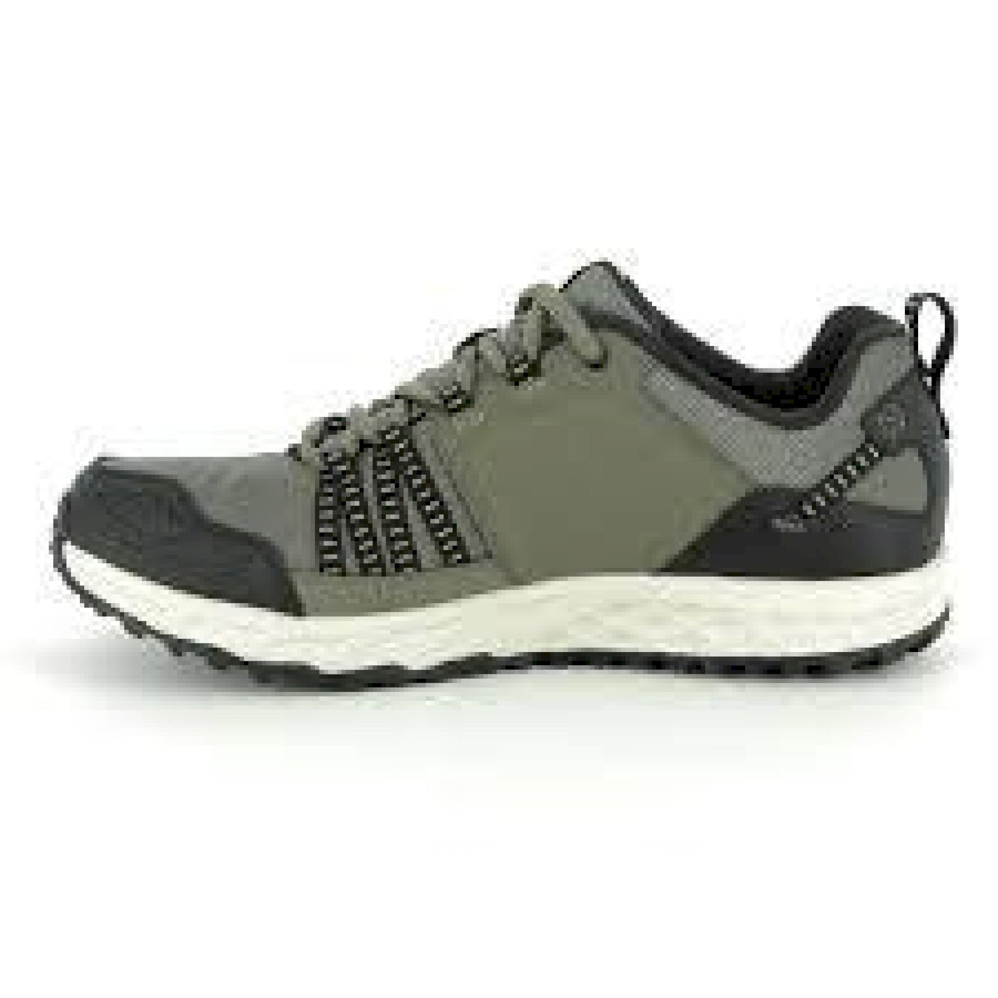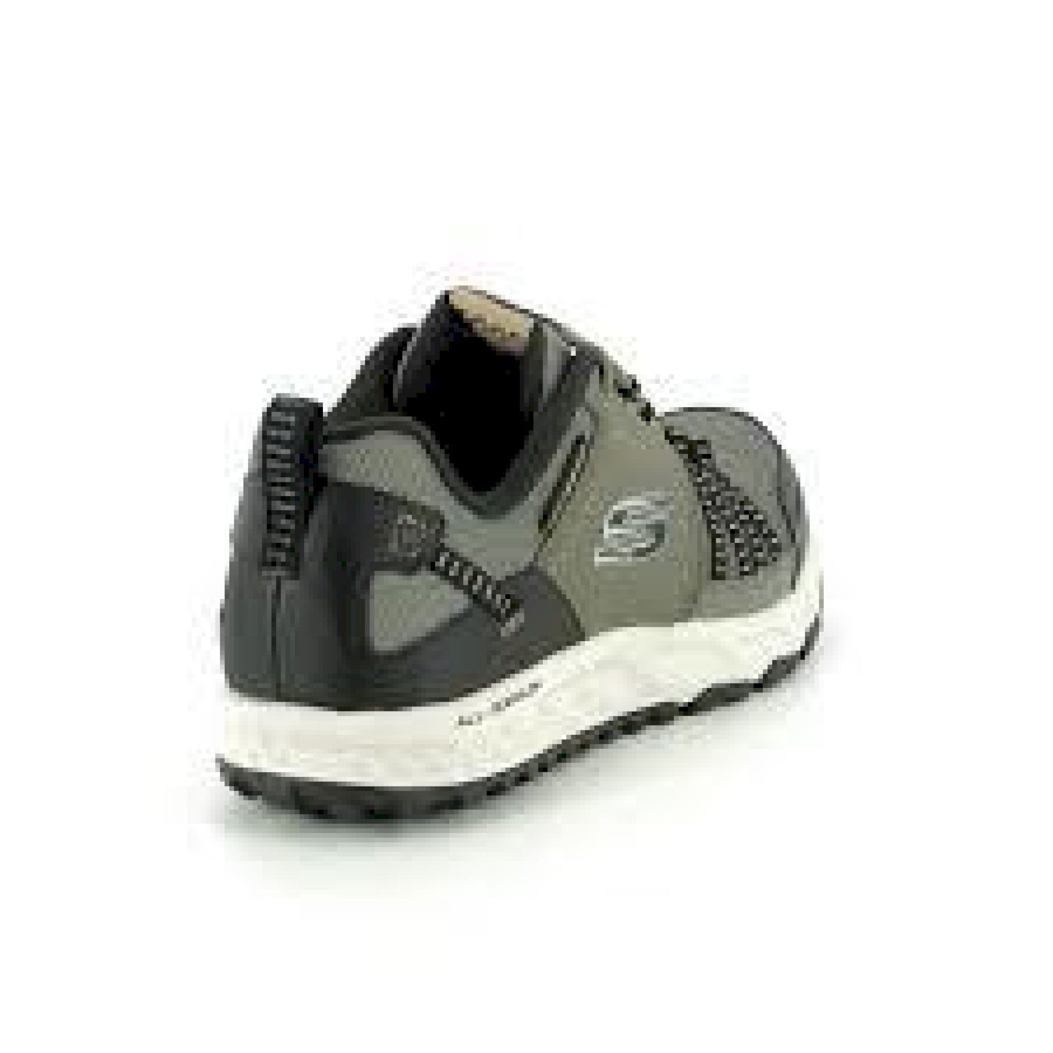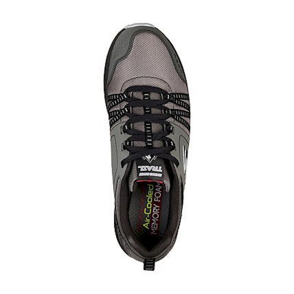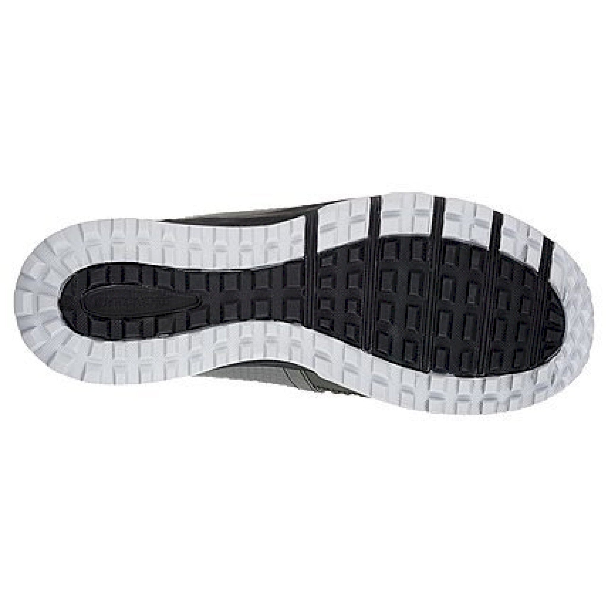 Domina il terreno con stile e comfort con la scarpa skechers escape plan. tomaia in pelle, tessuto sintetico e mesh in una sneaker da allenamento e da passeggio da pista sportiva con lacci con cuciture, sovrapposizione e accenti di perforazione. soletta in memory foam raffreddata ad aria