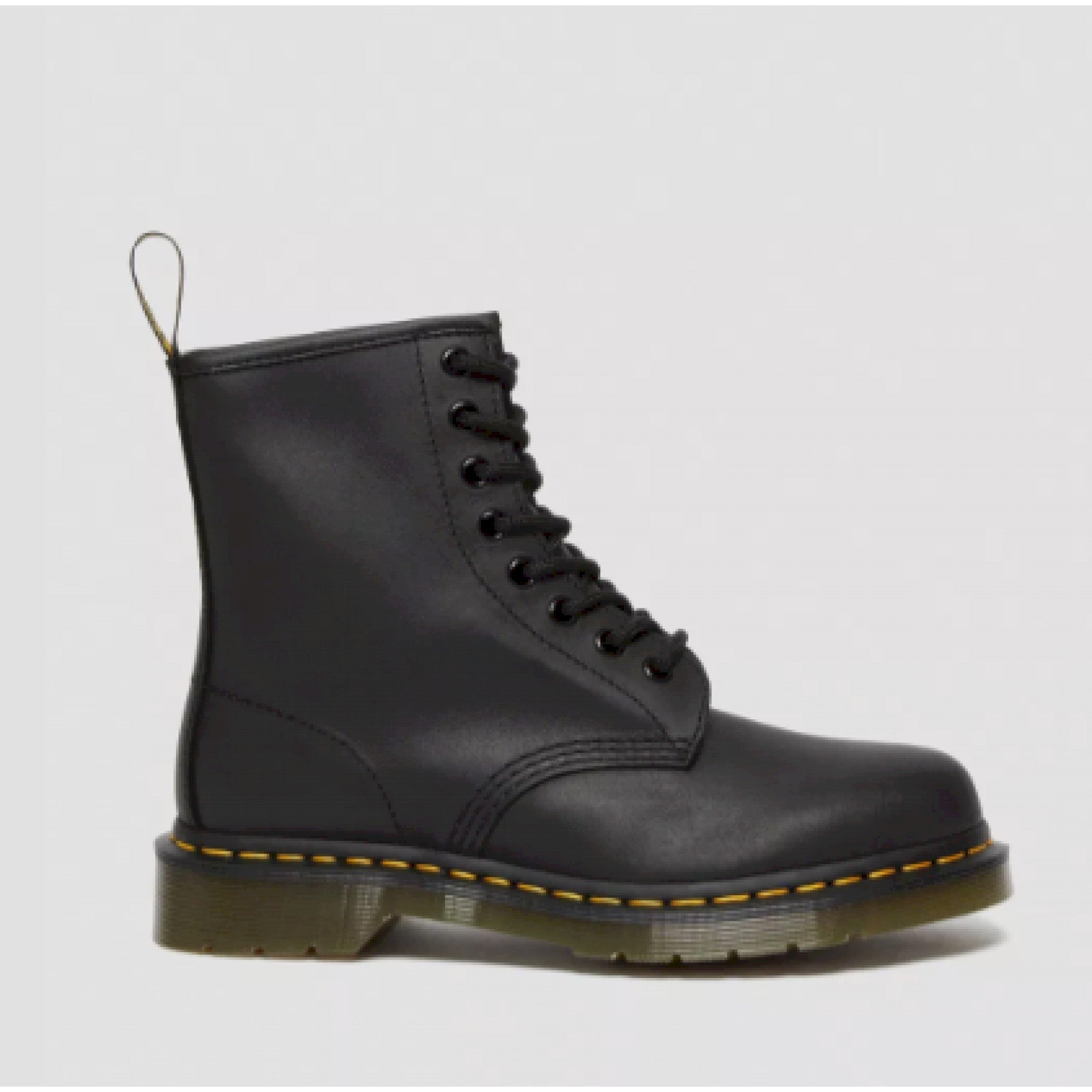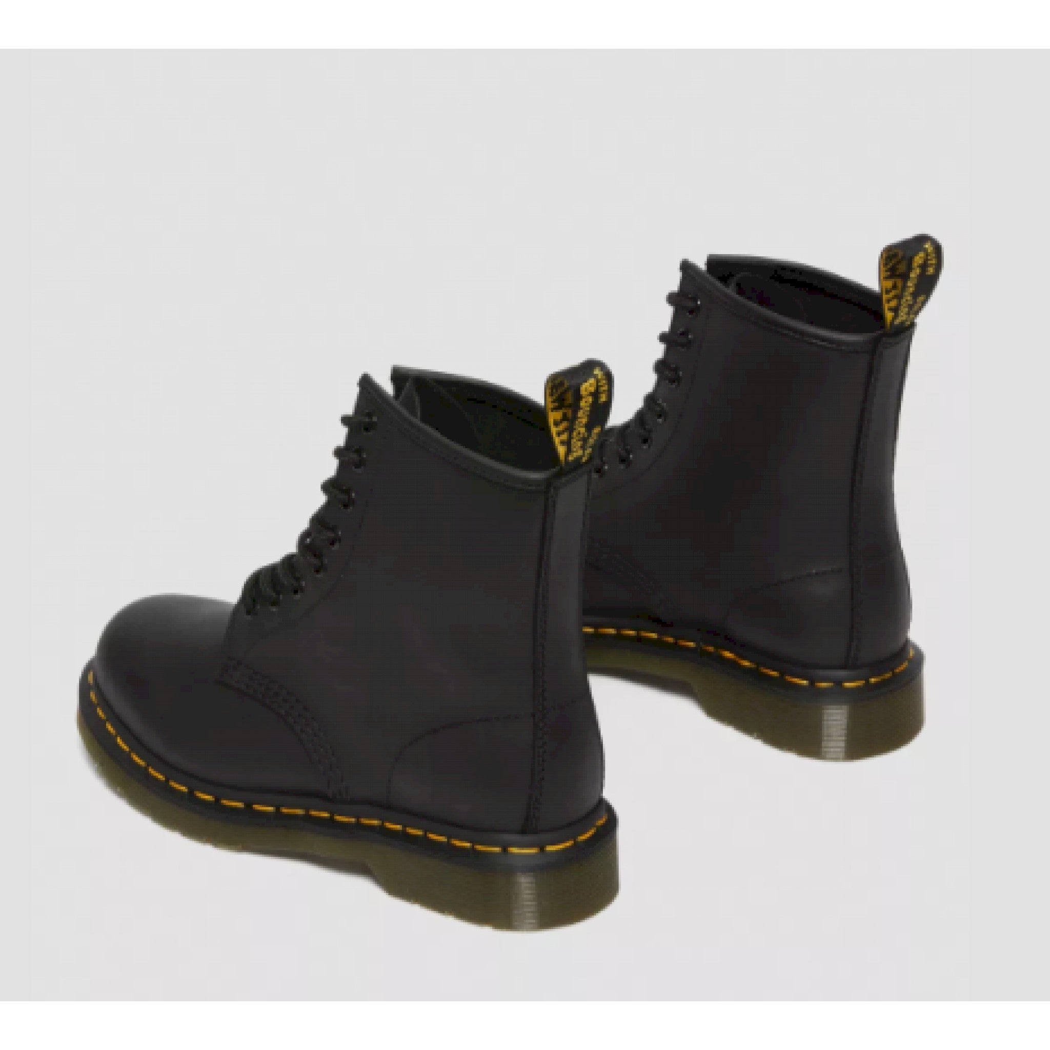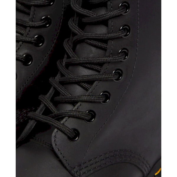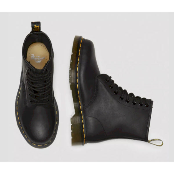Una classica silhouette di dr. martens, la 1460 greasy a 8 occhi è tutta incentrata sulla pelle: un nero opaco con un aspetto ceroso e oleoso. costruito su una suola robusta ma raffinata, questo stivale è comfort premium travestito da stile elegante.