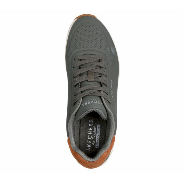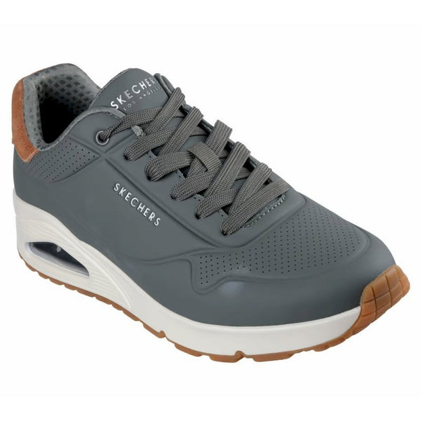 Skechers street™ uno - suited on air unisce comfort e uno stile sportivo raffinato. questo modello da jogging classico allacciato presenta una tomaia in durabuck con dettagli impressi e una finitura in pelle scamosciata sul tallone, una soletta skechers air-cooled memory foam® e un’intersuola ammortizzata ad aria con tecnologia visibile skech-air®.