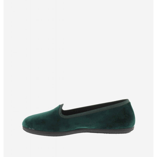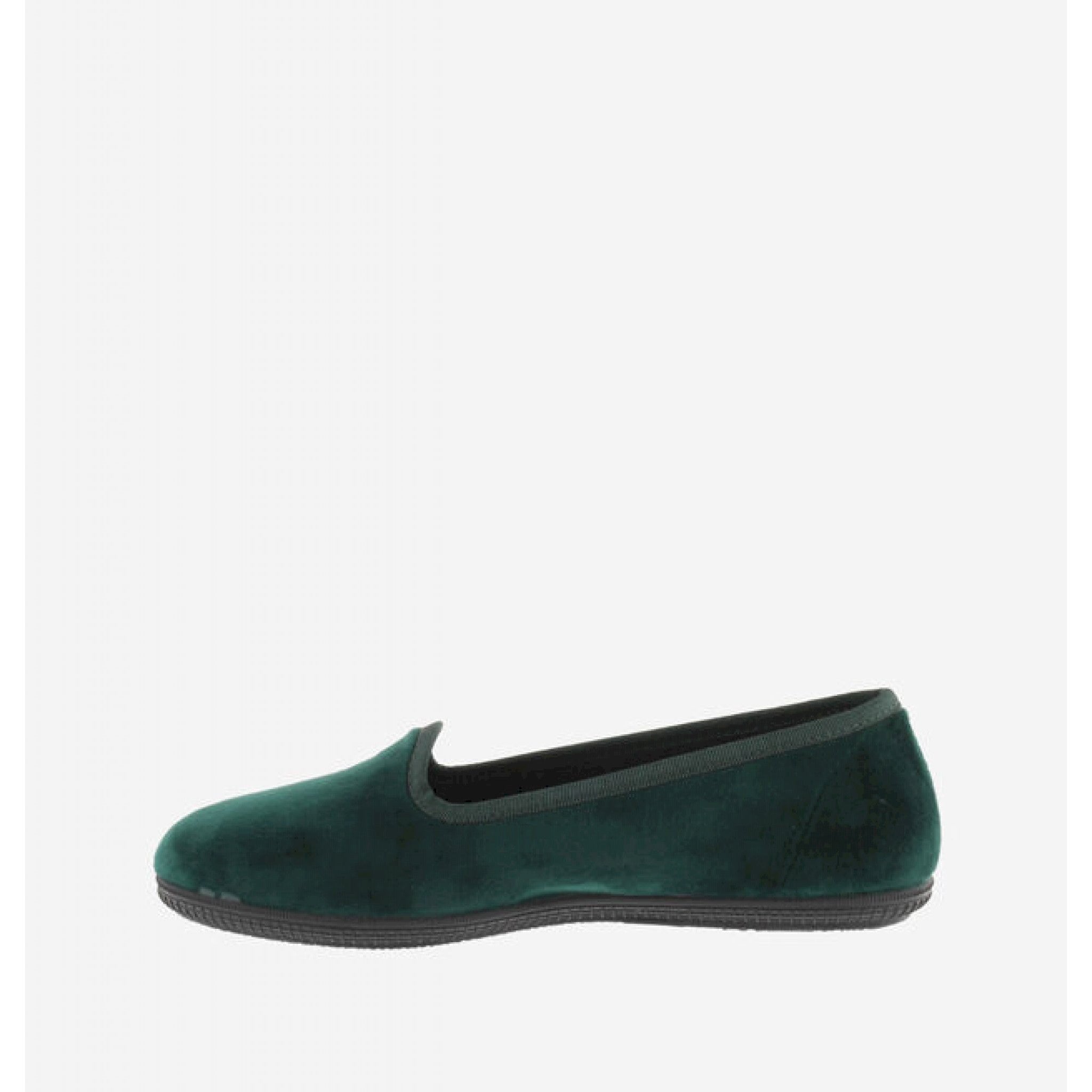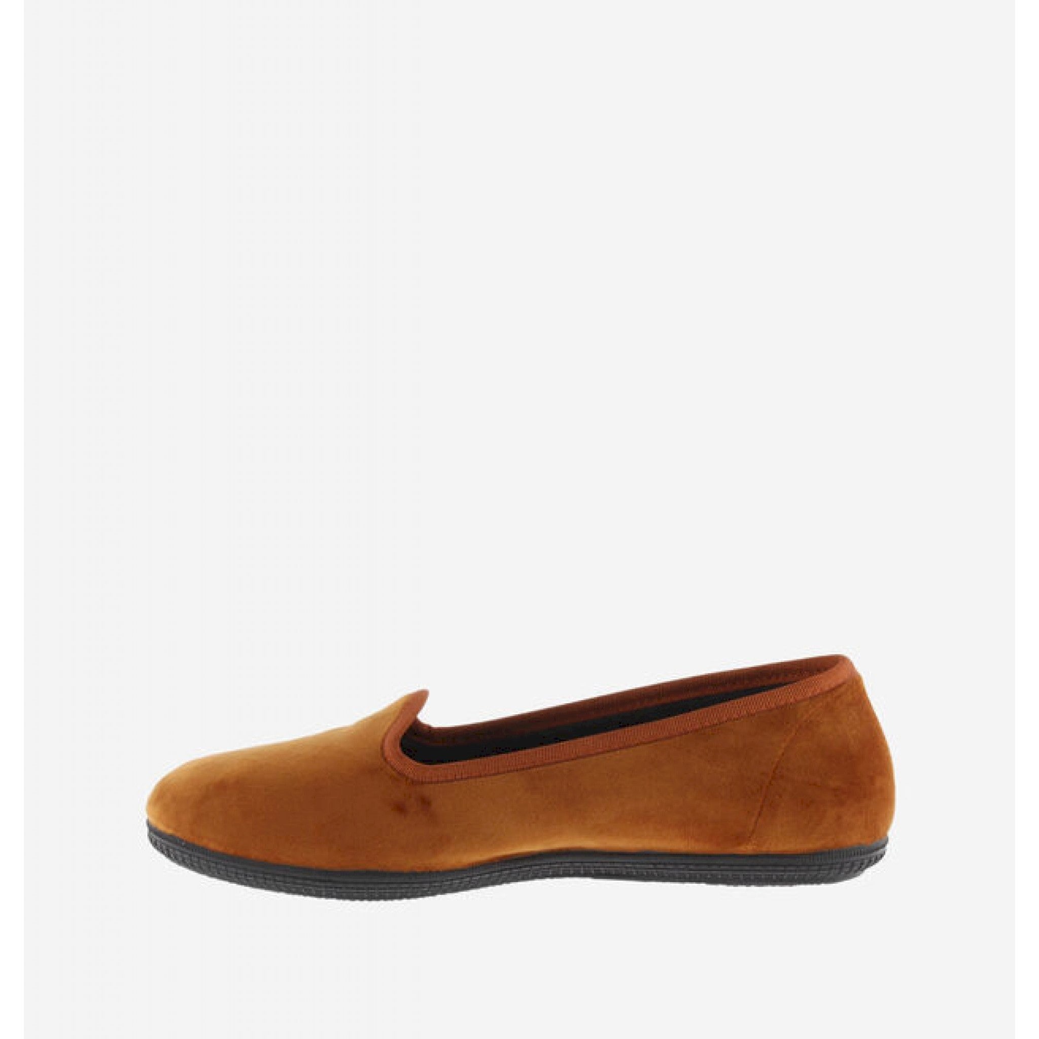 Slippers prodotte in spagna in velluto a tinta unita con bordino abbinato e comoda suola in gomma naturale. sono molto comode e versatili.