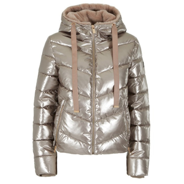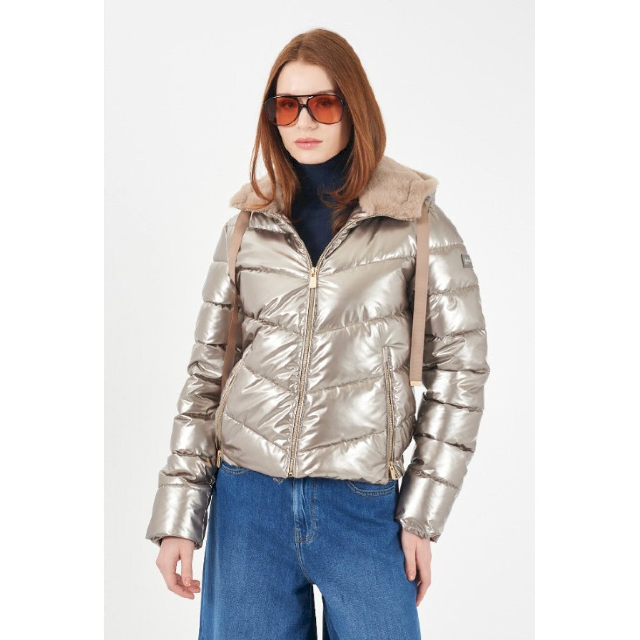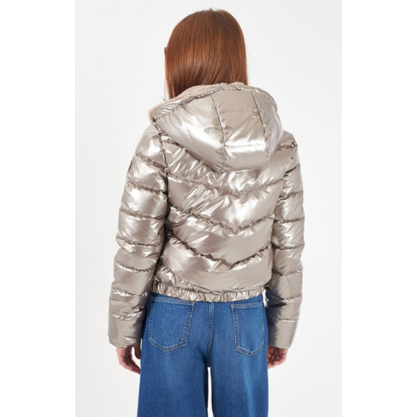 Giubbino bomber con cappuccio foderato in ecopelliccia