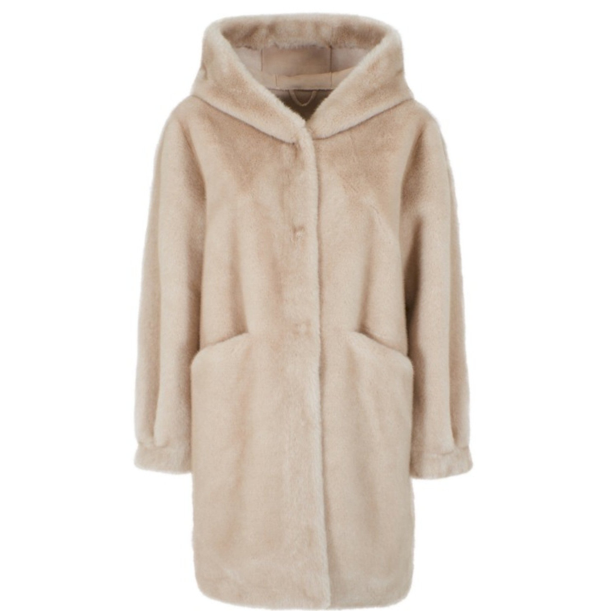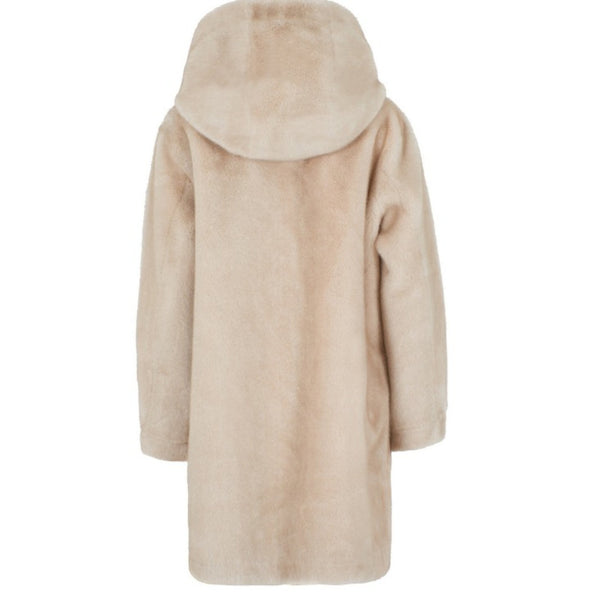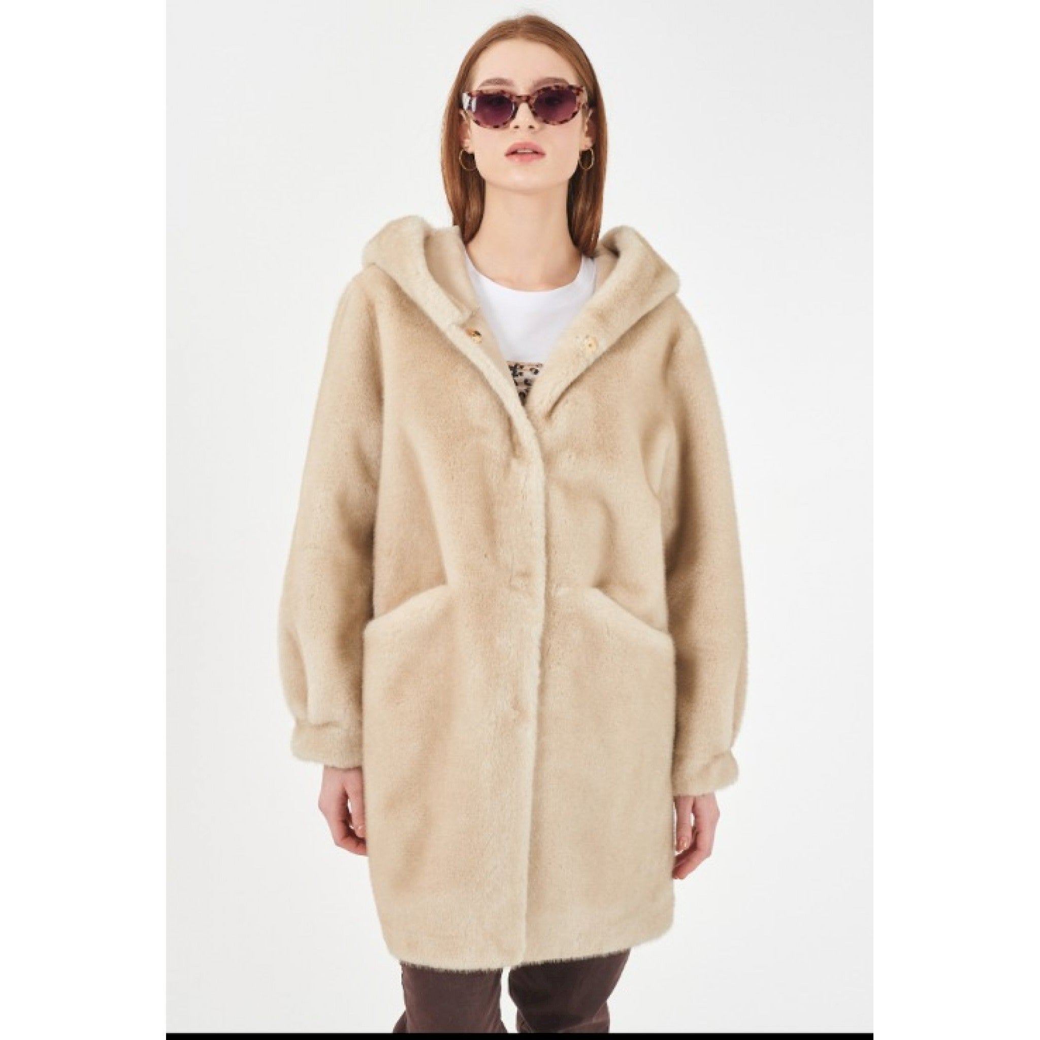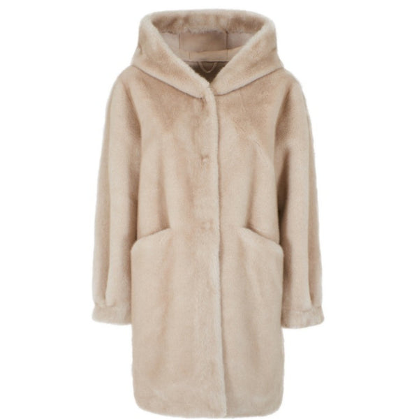 Cappotto in eco pelliccia e cappuccio 2 tasche chiusura a tre bottoni
