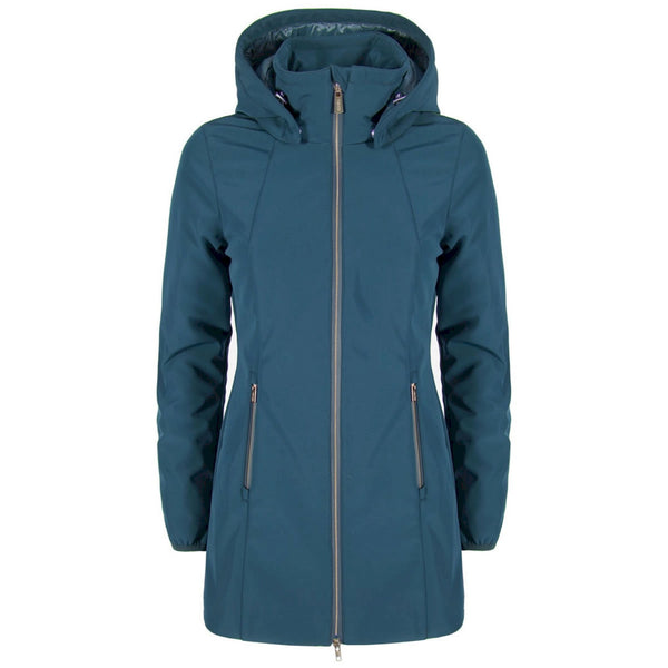 Piumino 3/4 in soft shell elasticizzato imbottito in piuma.