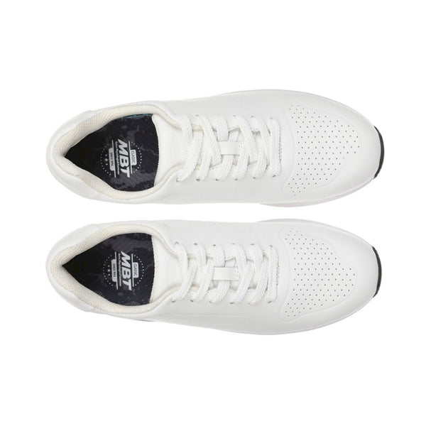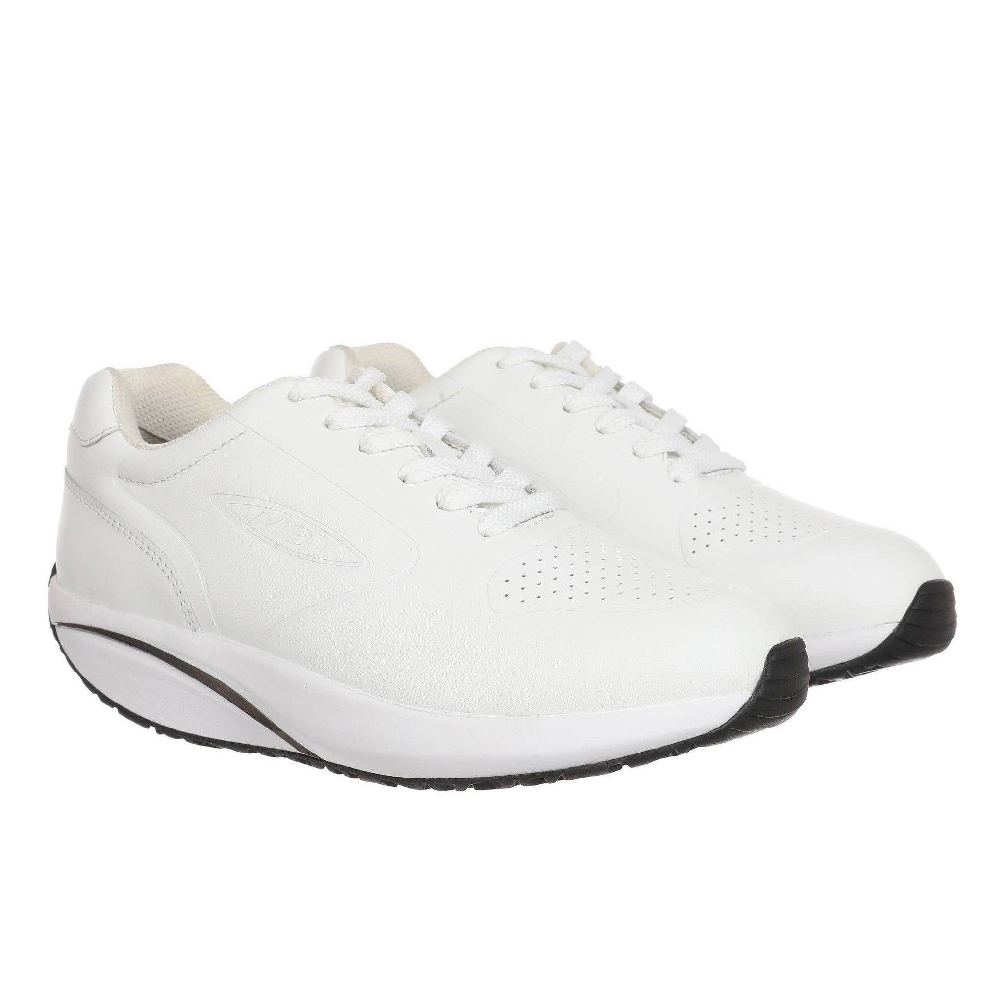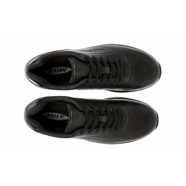 I nostri classici del 1997 ritornano in questa collezione autunno/inverno 2017 con nuovi colori. calzature mbt della linea active, questa scarpa da donna con i lacci ha la tomaia in pelle sintetica e maglia e il plantare in maglia. questa scarpa fisiologica fa stare comodi tutto il giorno. calzatura da donna con la tecnologia curva di mbt di colore nero.