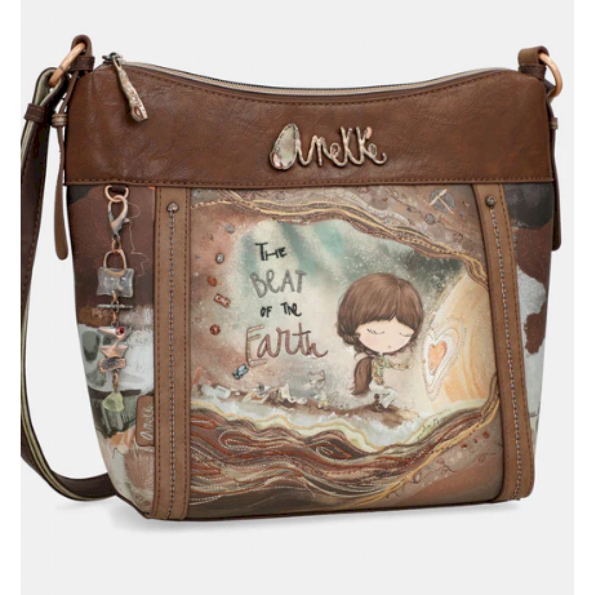 Questa borsa a tracolla medio-grande ha una chiusura a cerniera e fodera interna e tasche, oltre a una tasca posteriore esterna per una maggiore praticità. la tracolla è regolabile a diverse lunghezze.