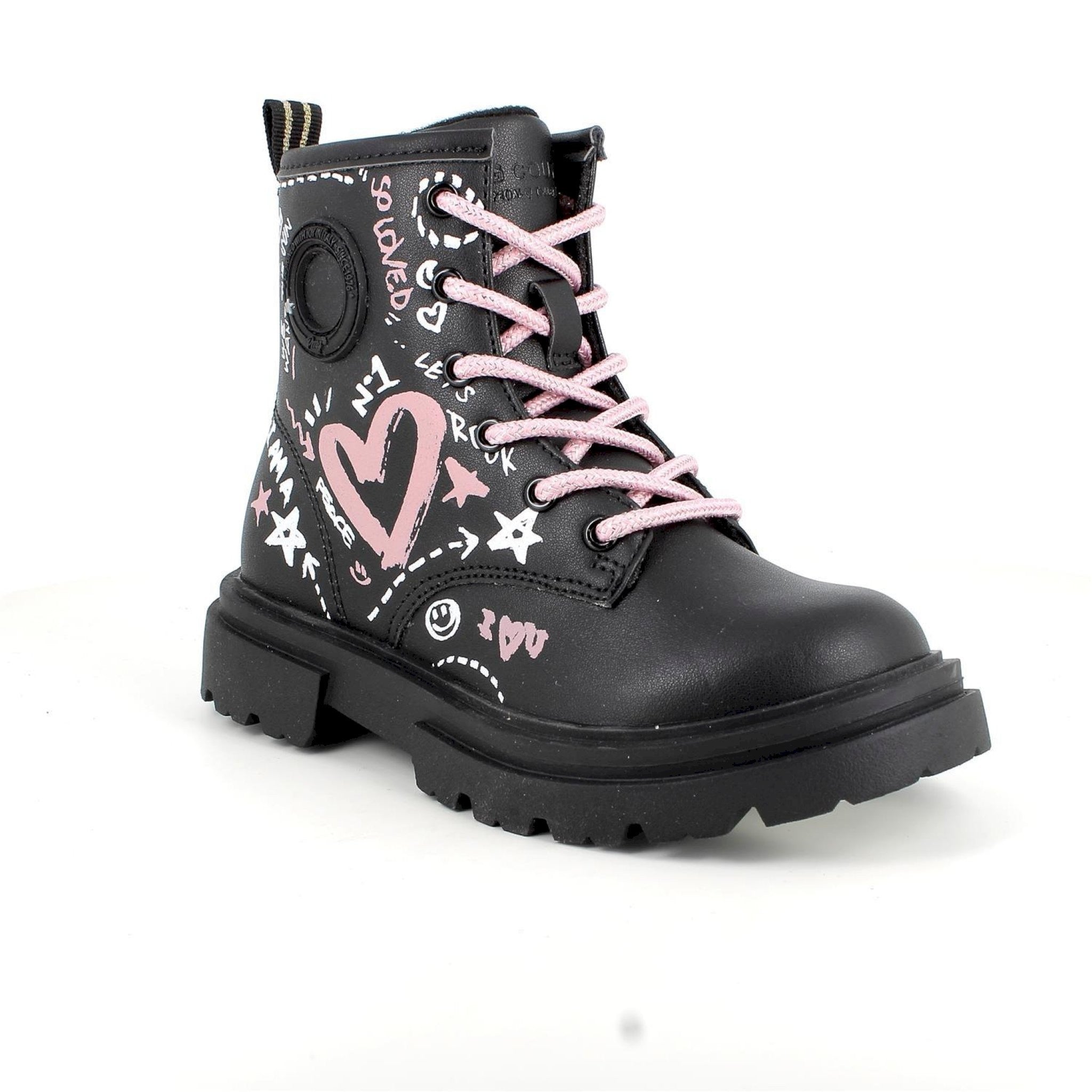 Questi anfibi da bambina sono sicuramente la versione più cool della stagione. la suola spessa e le decorazioni stile graffiti piaceranno di certo alle ragazze, che potranno abbinarli a piacimento. hanno i lacci, ma per indossarli ancora con più facilità, internamente c'è la zip. il sottopiede anatomico è estraibile e rivestito in pelle per assicurare traspirabilità e igiene.