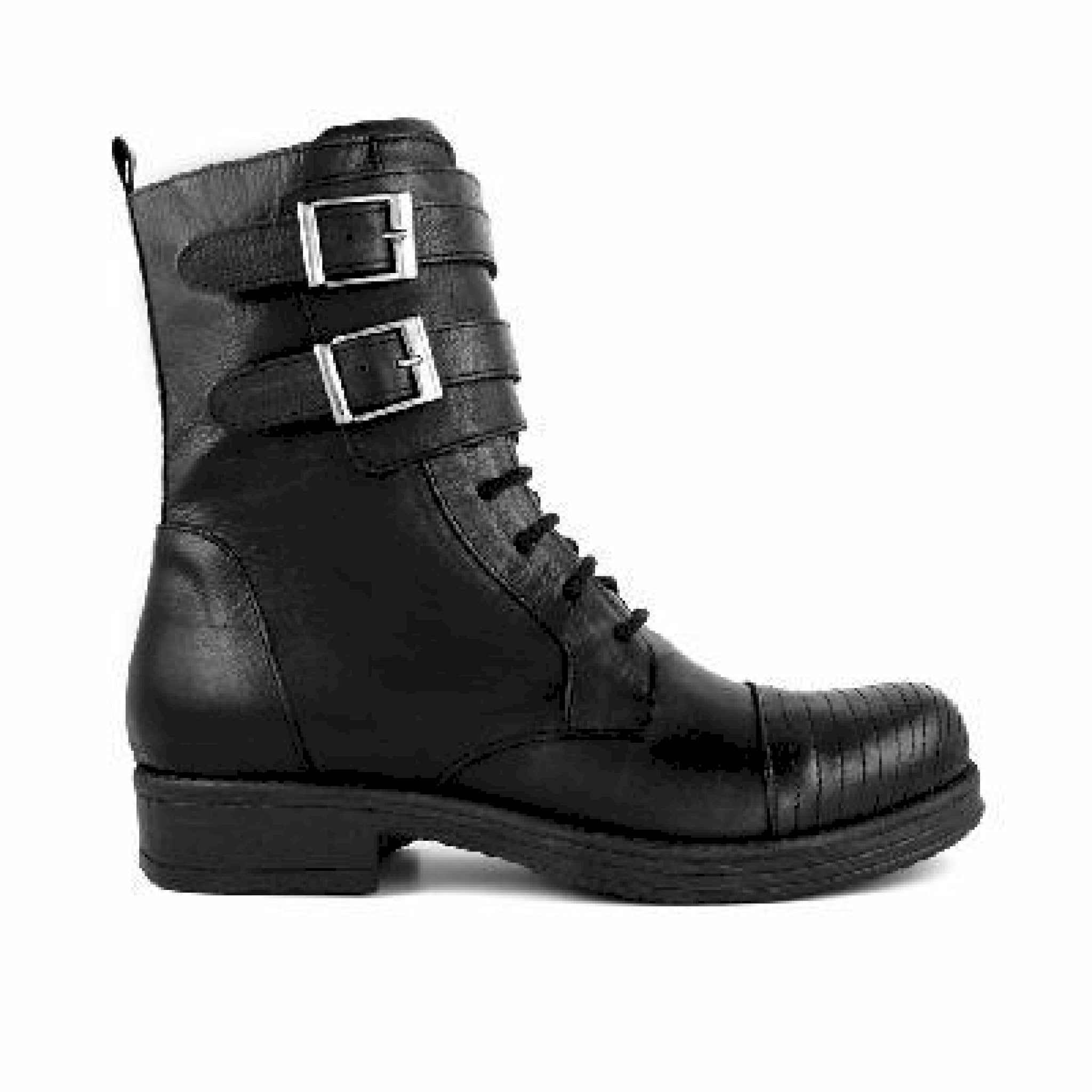 Anfibio vitello nero con lacci e fibbie laterali