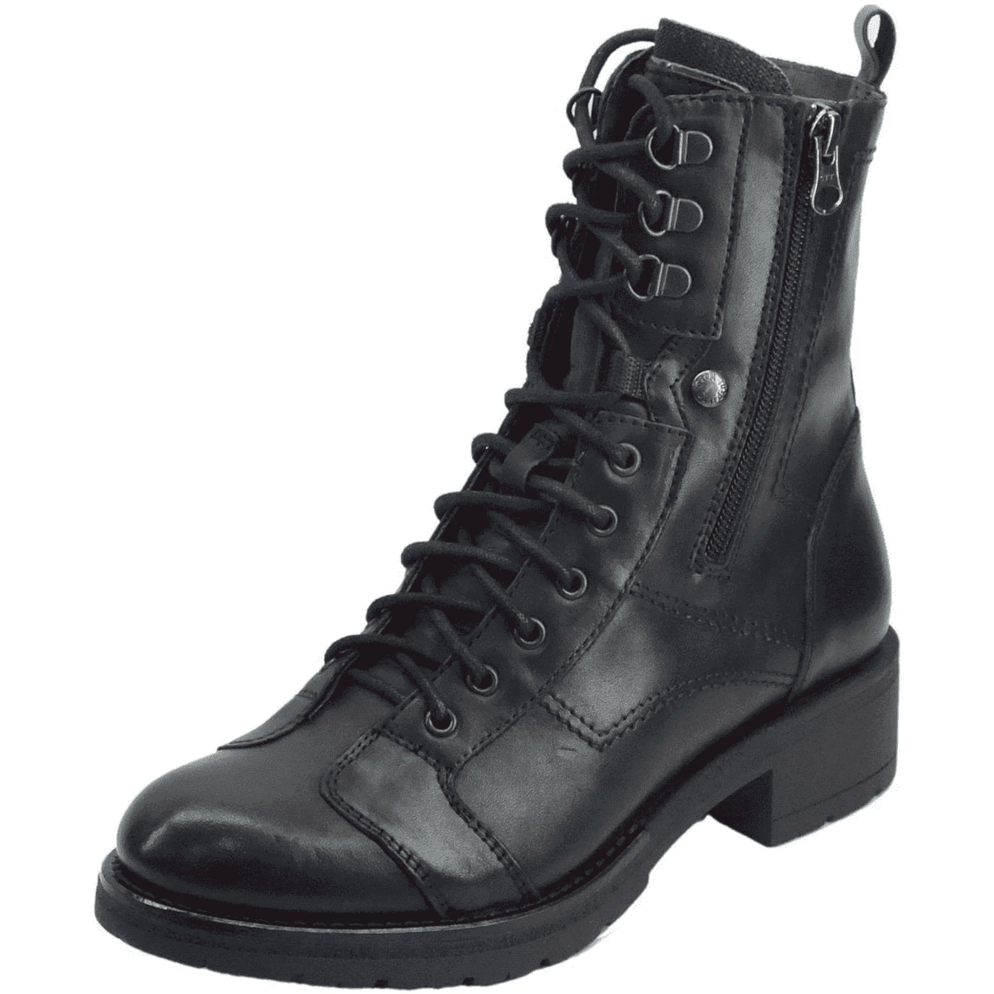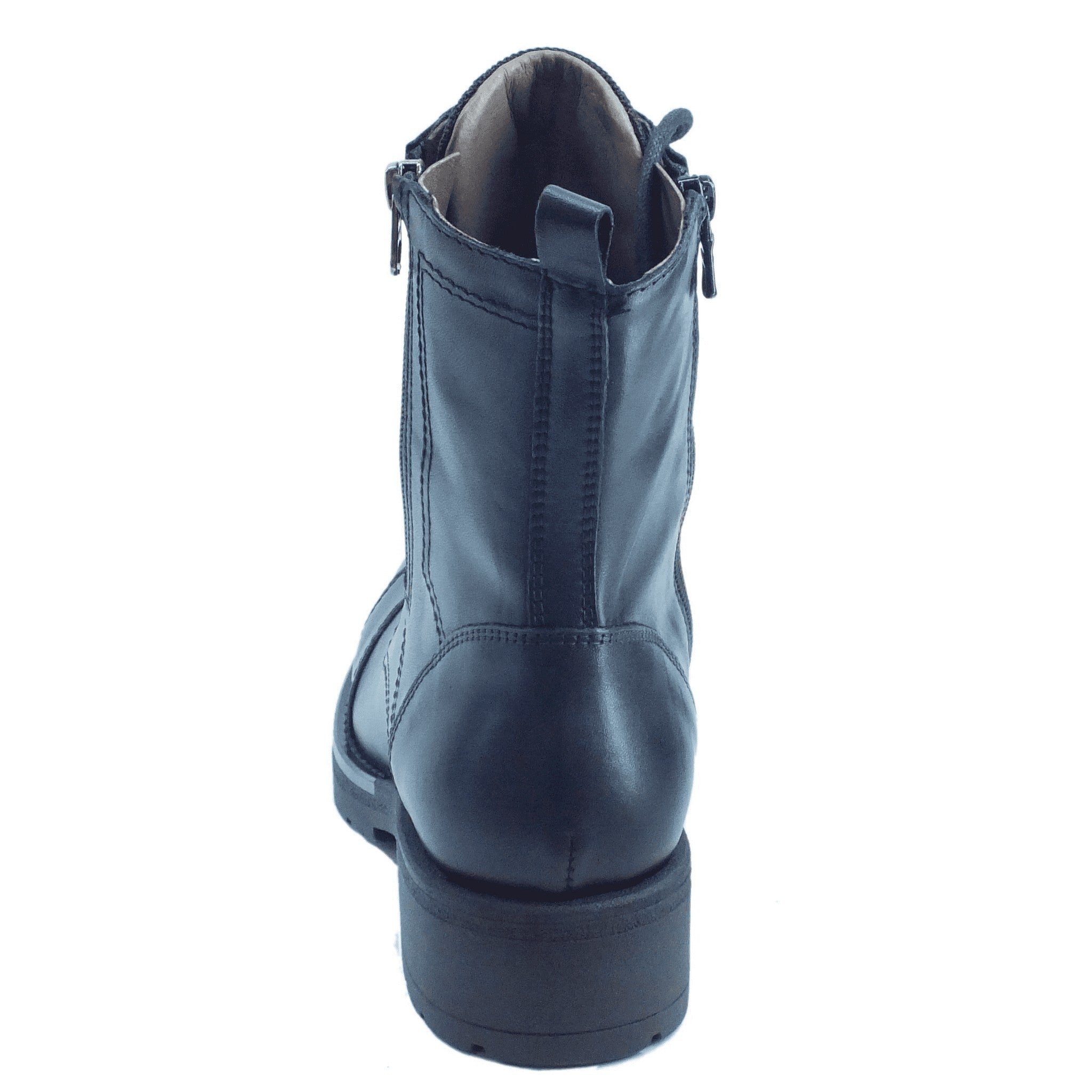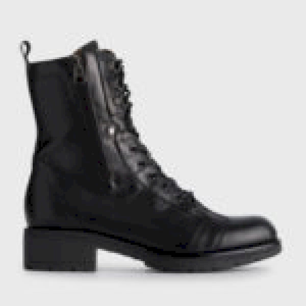 Stivale allacciato in pelle con impunture zip e ganci che decorano la tomaia