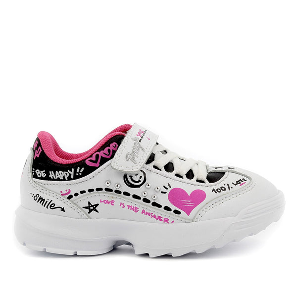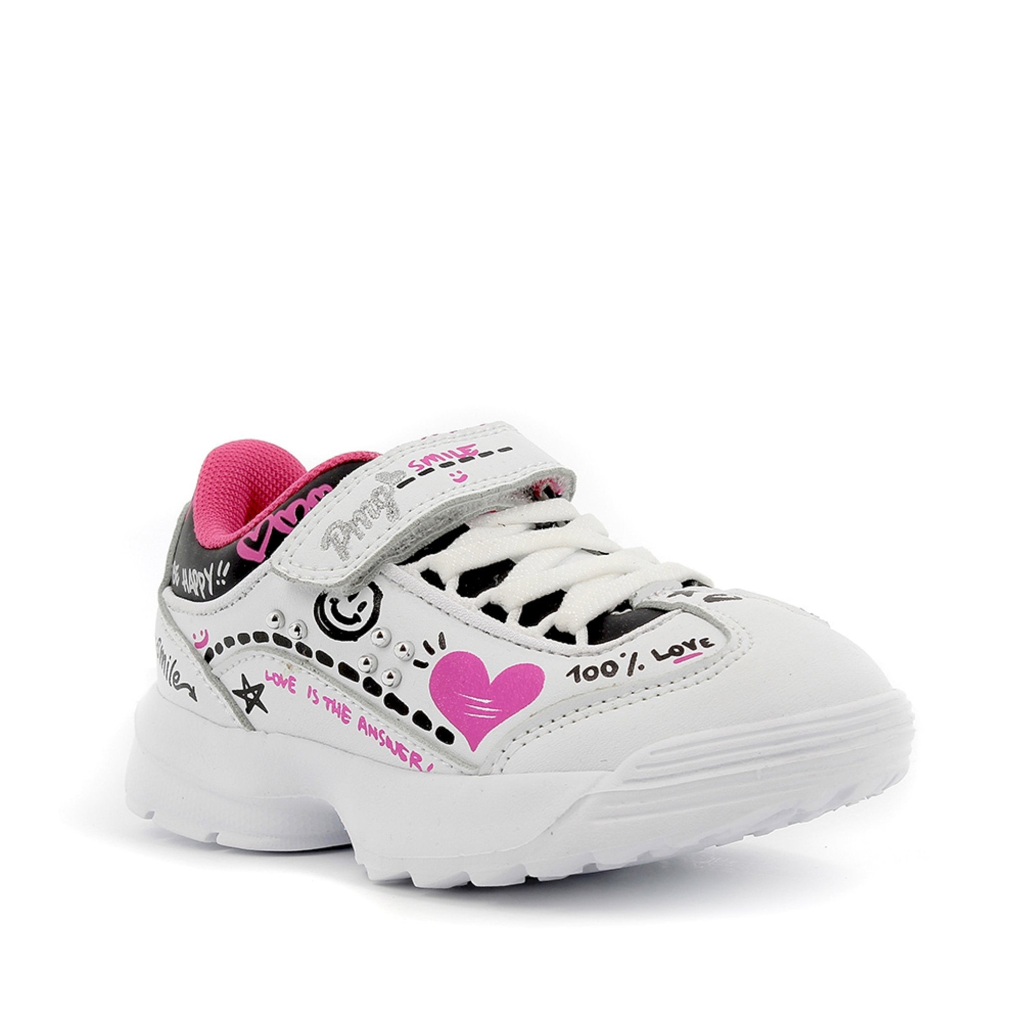 Scarpa in pelle sintetica decorata con stampe