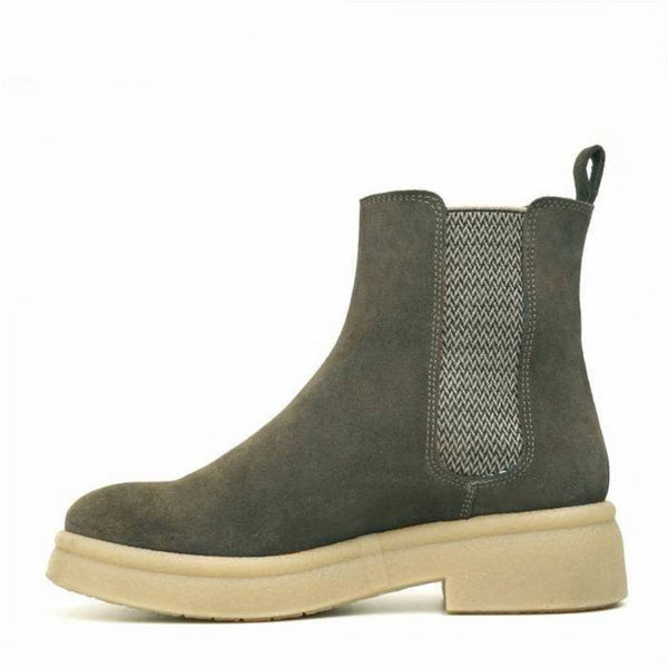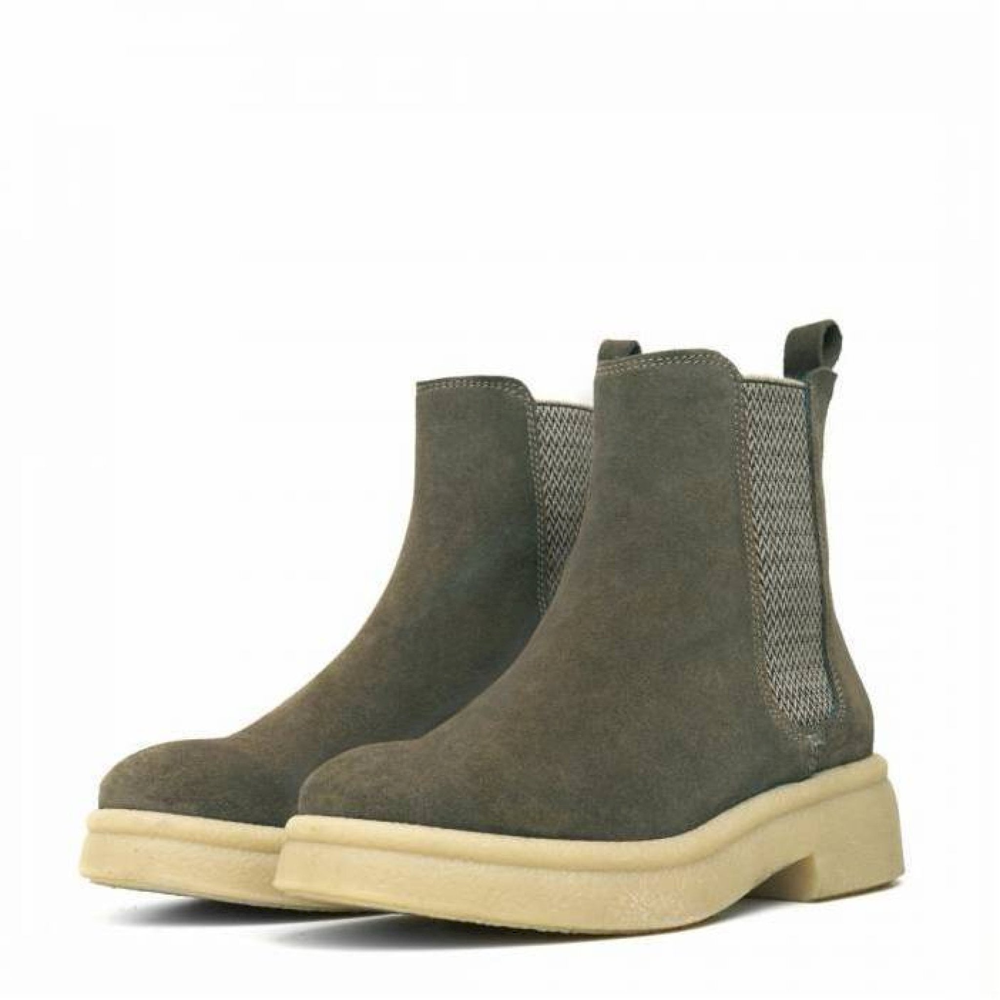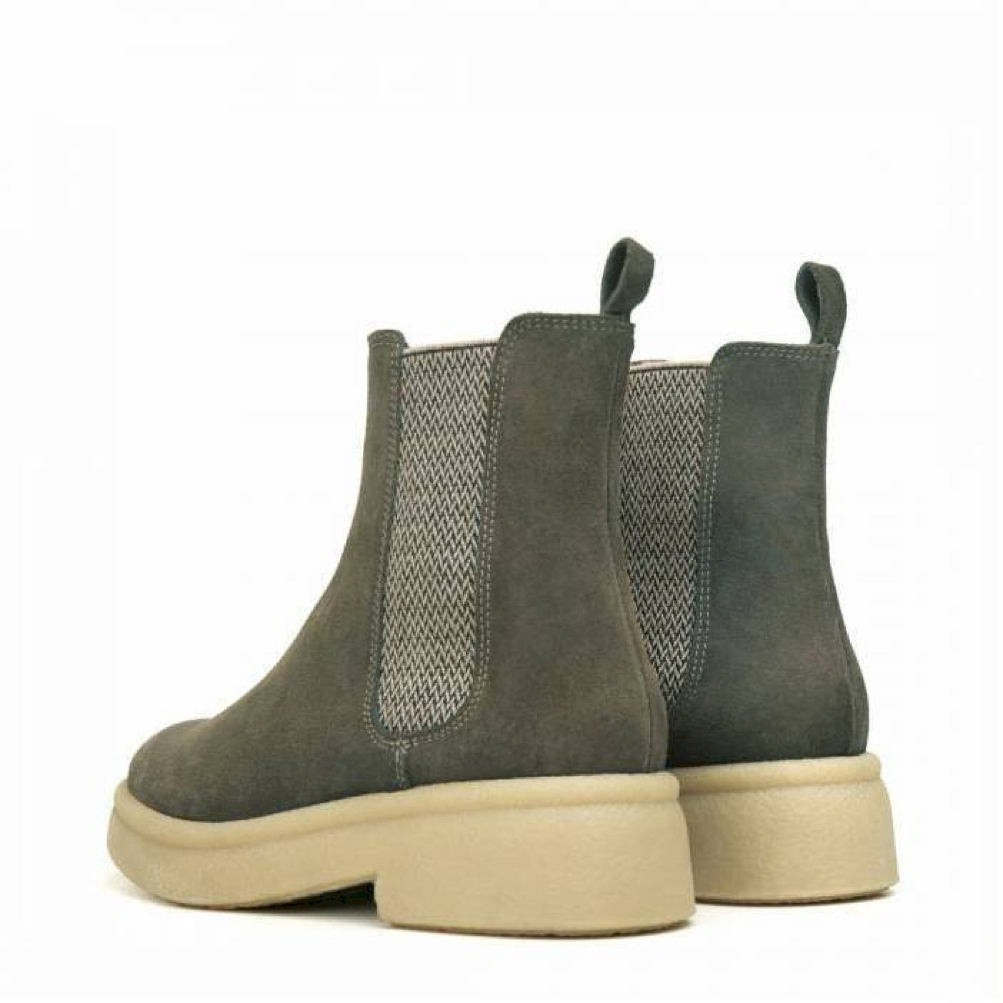 Beatles in camoscio verde con fasce laterali elastiche effetto tweed, fondo 4,5 cm