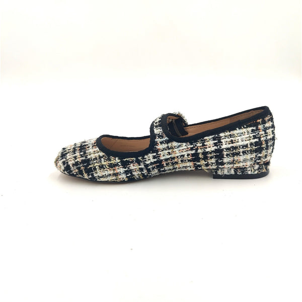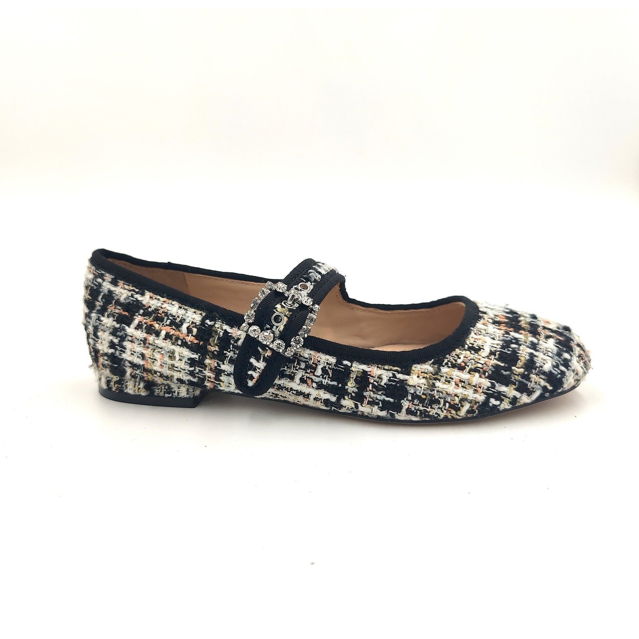Ballerina modello bebè tweed multicolore con cinturino regolabile arricchito da fibbia gioiello