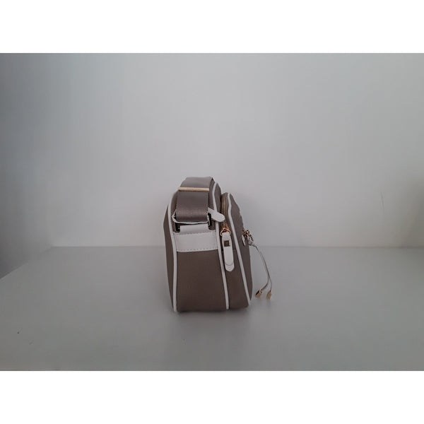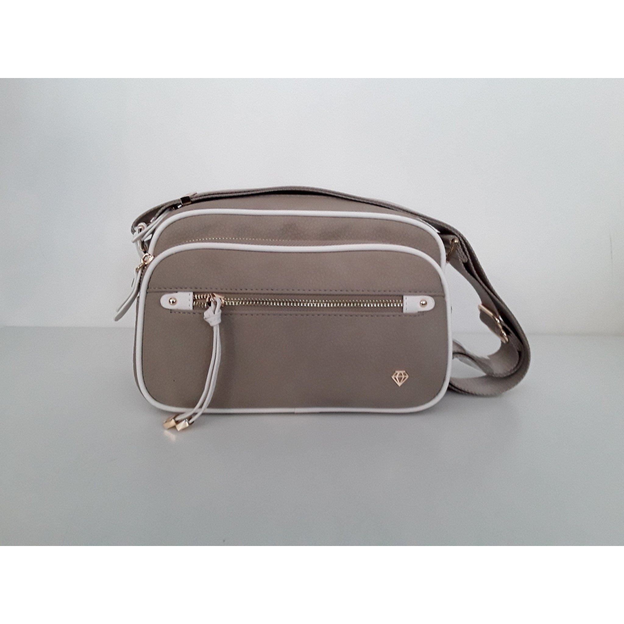 Tracolla con due cerniere e due scomparti. fodera in tessuto con tasche interne. dimensioni: l.25 x h.16 x p.10