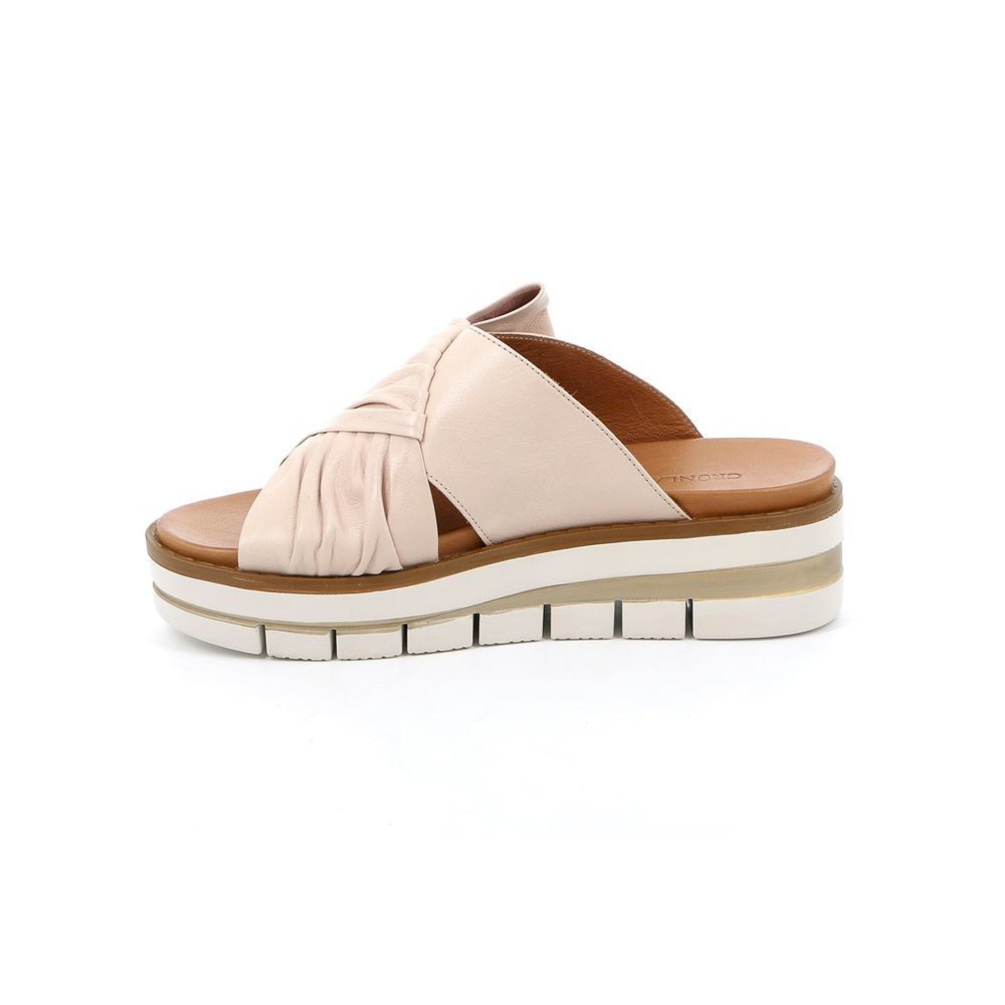 Vuole ricordare un soffice fiocco la tomaia di questa ciabatta con zeppa, è realizzata in vera pelle di prima scelta ed è stata disegnata per essere più flessibile delle concorrenti. vi sono infatti delle scannellature trasversali sul battistrada che consentono una maggiore flessione dello stesso