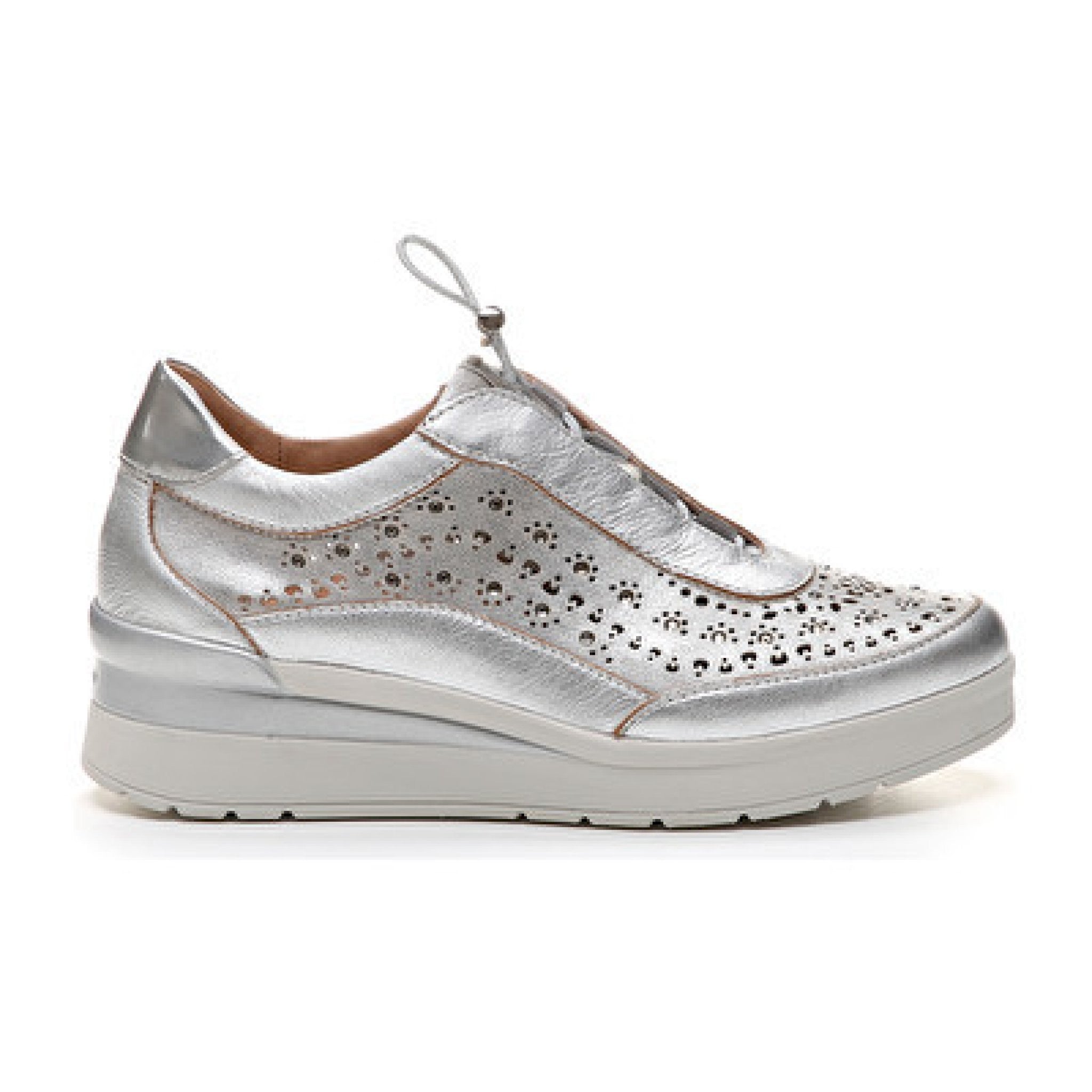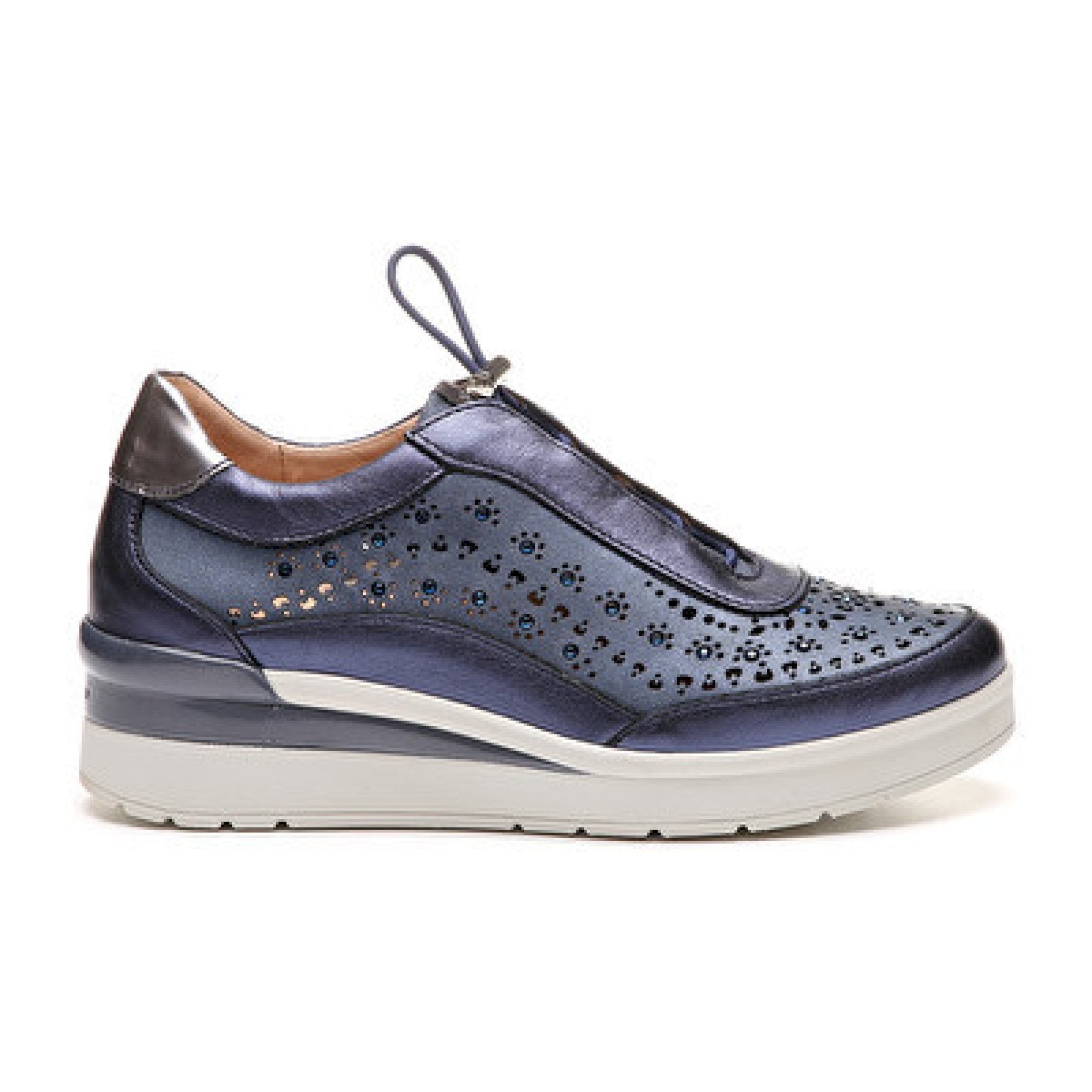 Sneakers con zeppa media e decoro brillantini sulla tomaia. stringatura elastica