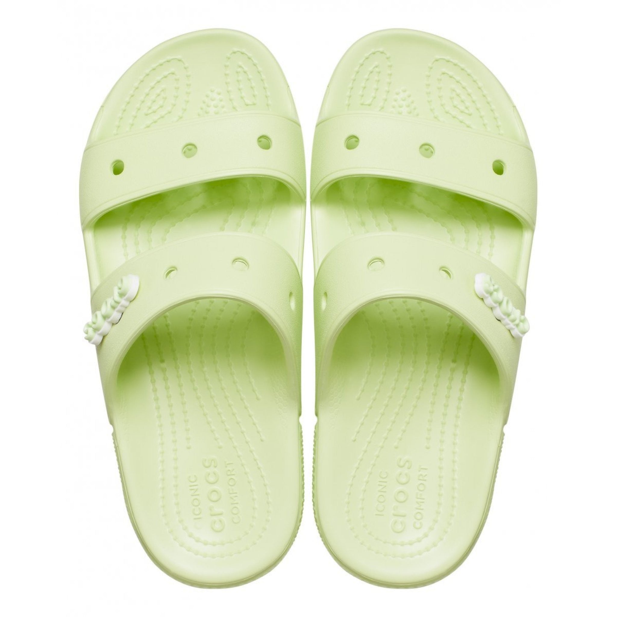Il look e il comfort dei nostri classic clog e crocs slide ora a forma di sandalo. due cinturini sulla tomaia garantiscono ancora più comfort e sicurezza di tenuta, nonché sette fori per personalizzare il vostro sandalo con gli charm jibbitz™. ve ne doniamo uno di benvenuto, quello con logo crocs. l'ammortizzazione garantita dalla schiuma croslite™ originale sostiene il piede dalla spiaggia alle feste in giardino e oltre.