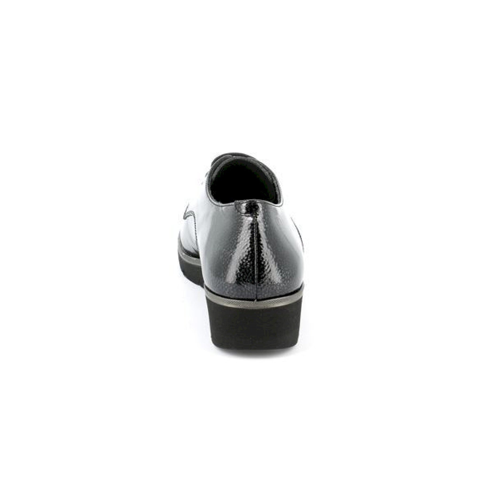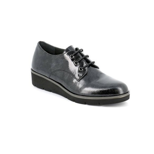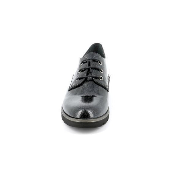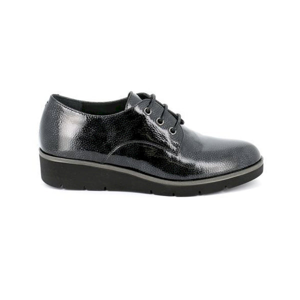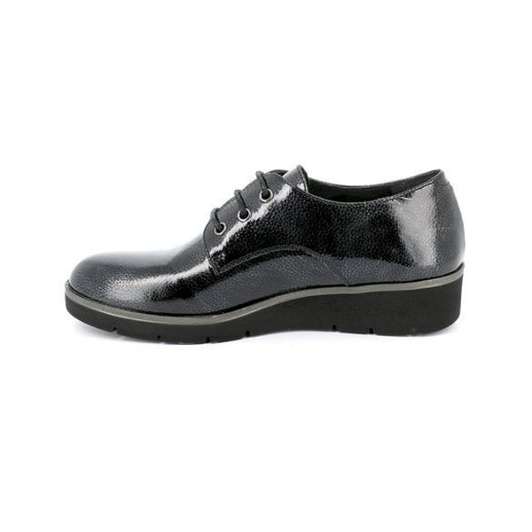 Derby in vernice con leggera zeppa. lo stile casual di questo modello la rende perfetta per l'ufficio o il tempo libero a seconda delle vostre preferenze, state certe che in ogni caso il comfort vi accompagnerà per tutto il tempo che la indosserete.