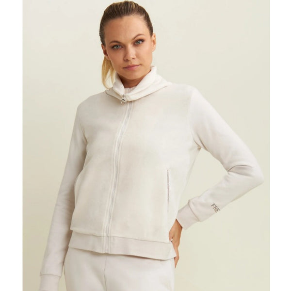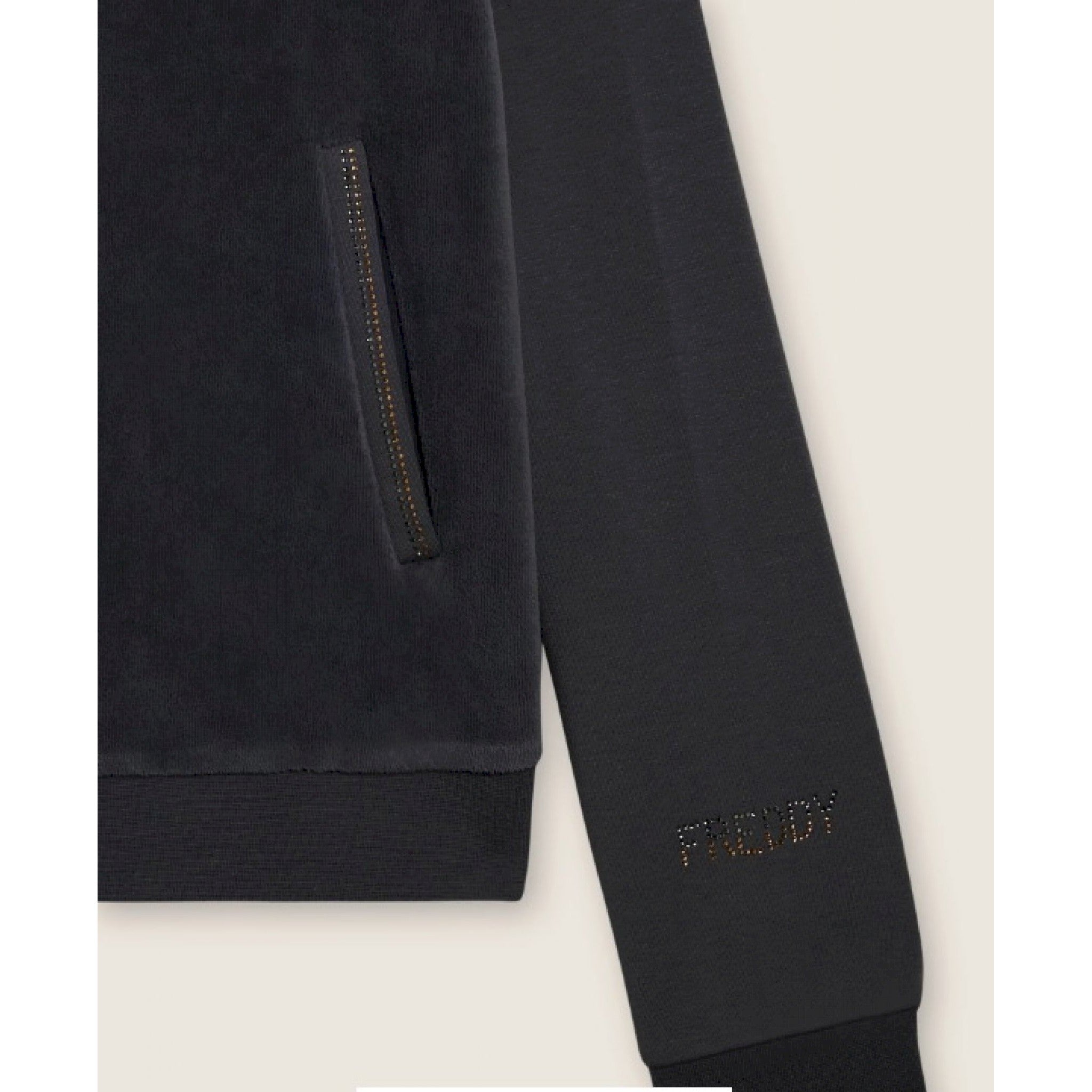 Freddy felpa collo alto da donna in velluto con zip e logo strass