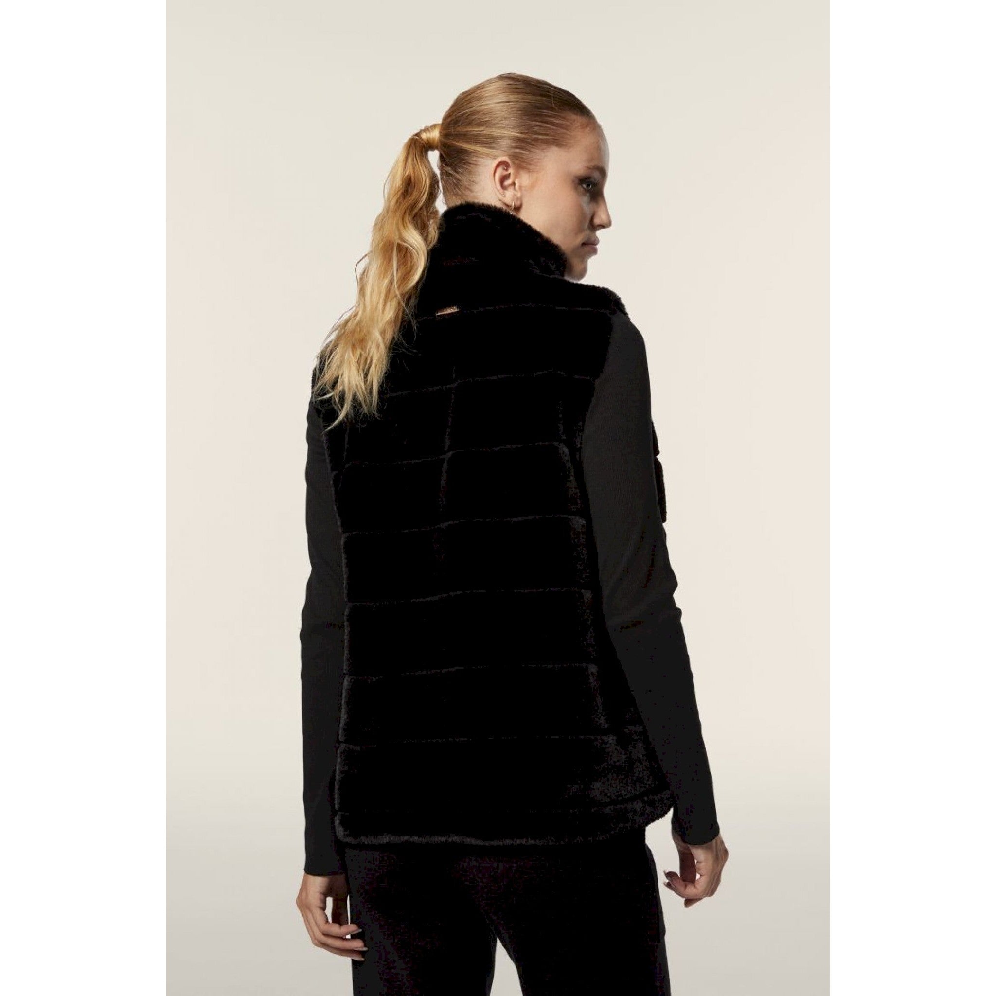 Freddy gilet donna zip e collo alto in pelliccia sintetica rigata