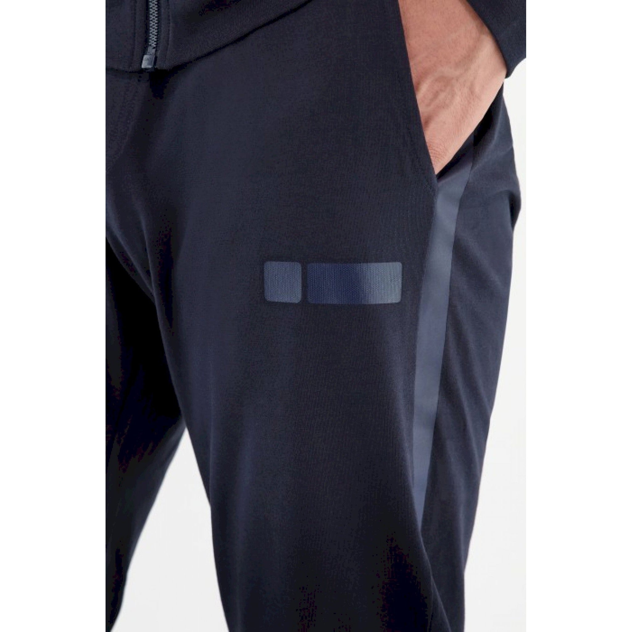 Pantaloni sportivi slim fit in jersey elasticizzato con no logo freddy sul fronte e bande laterali in tono colore. il modello presenta vita regolabile da coulisse, tasche anteriori interne, tasca posteriore singola a filetto e fondo con polsino in costina. capo ideale per le attività sportive e per il tempo libero dinamico grazie al design che favorisce la tenuta e alla morbida flessibilità del tessuto che dona comodità e ampiezza di movimento.