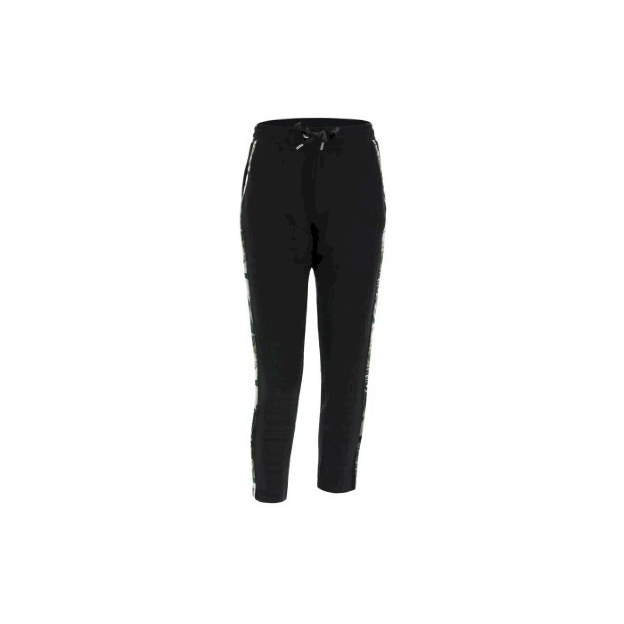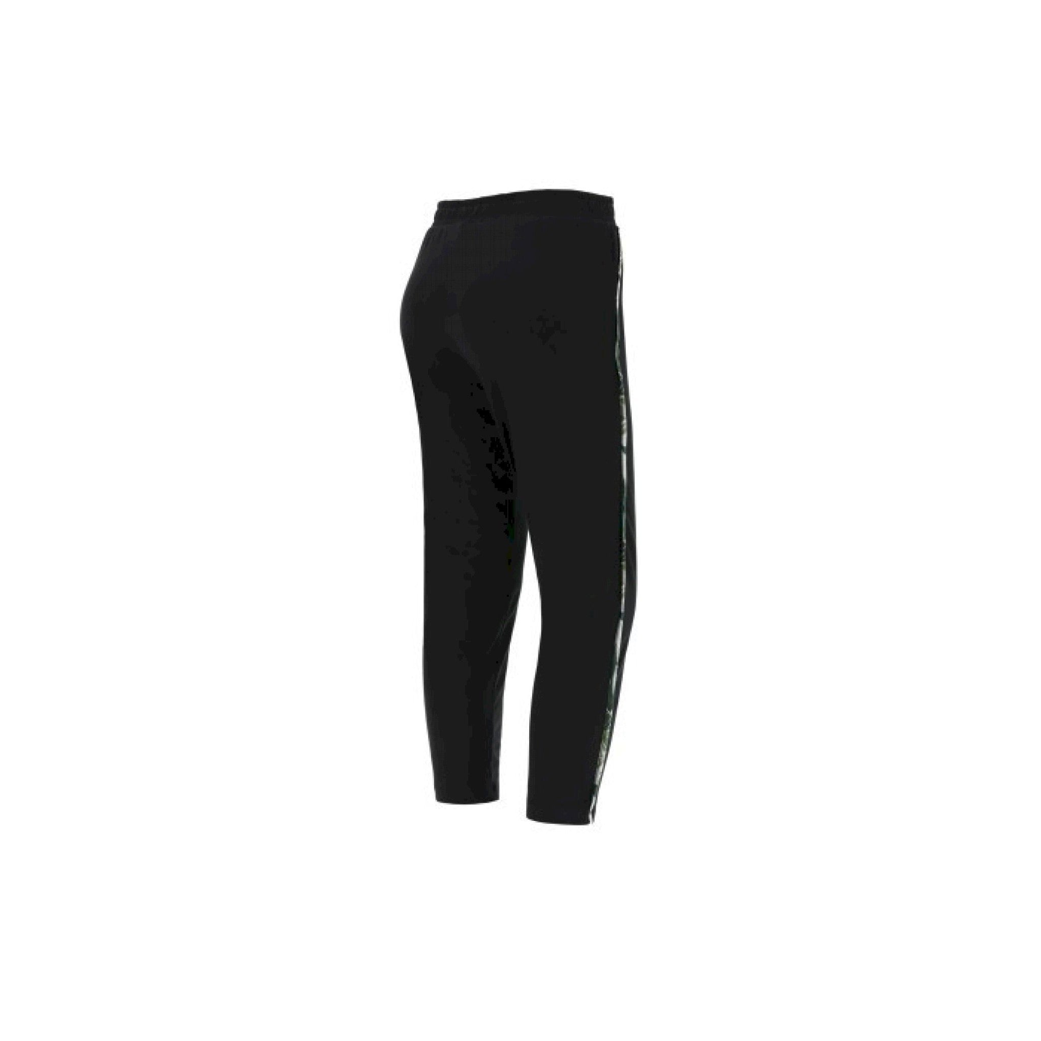Pantaloni tapered in jersey pesante elasticizzato, decorati da un inserto in tessuto a fantasia tropical che percorre il bordo delle tasche e le lunghezze. hanno vestibilità regular, tasche anteriori interne e vita con coulisse. capo confortevole impreziosito dal dettaglio dal mood esotico, adatto alle attività sportive e al tempo libero dinamico grazie al comfort del taglio tapered, più fluido sui fianchi e cosce e più stretto sul fondo, a cui si unisce la morbida flessibilità del tessuto che dona libertà di movimento.