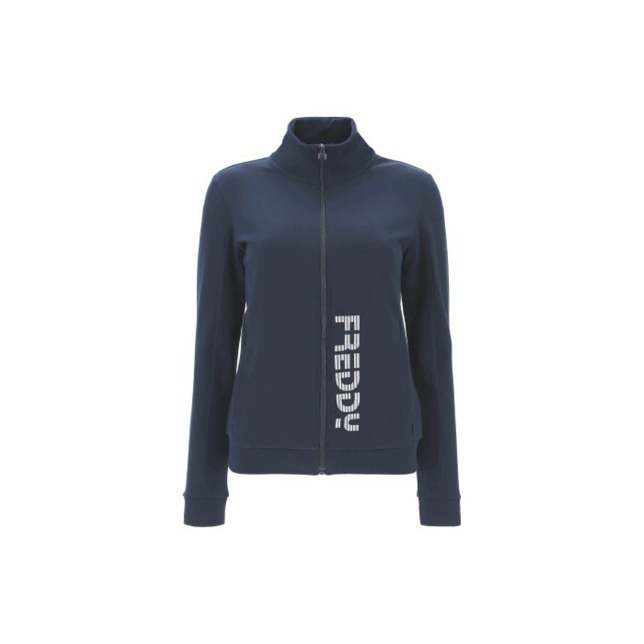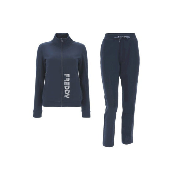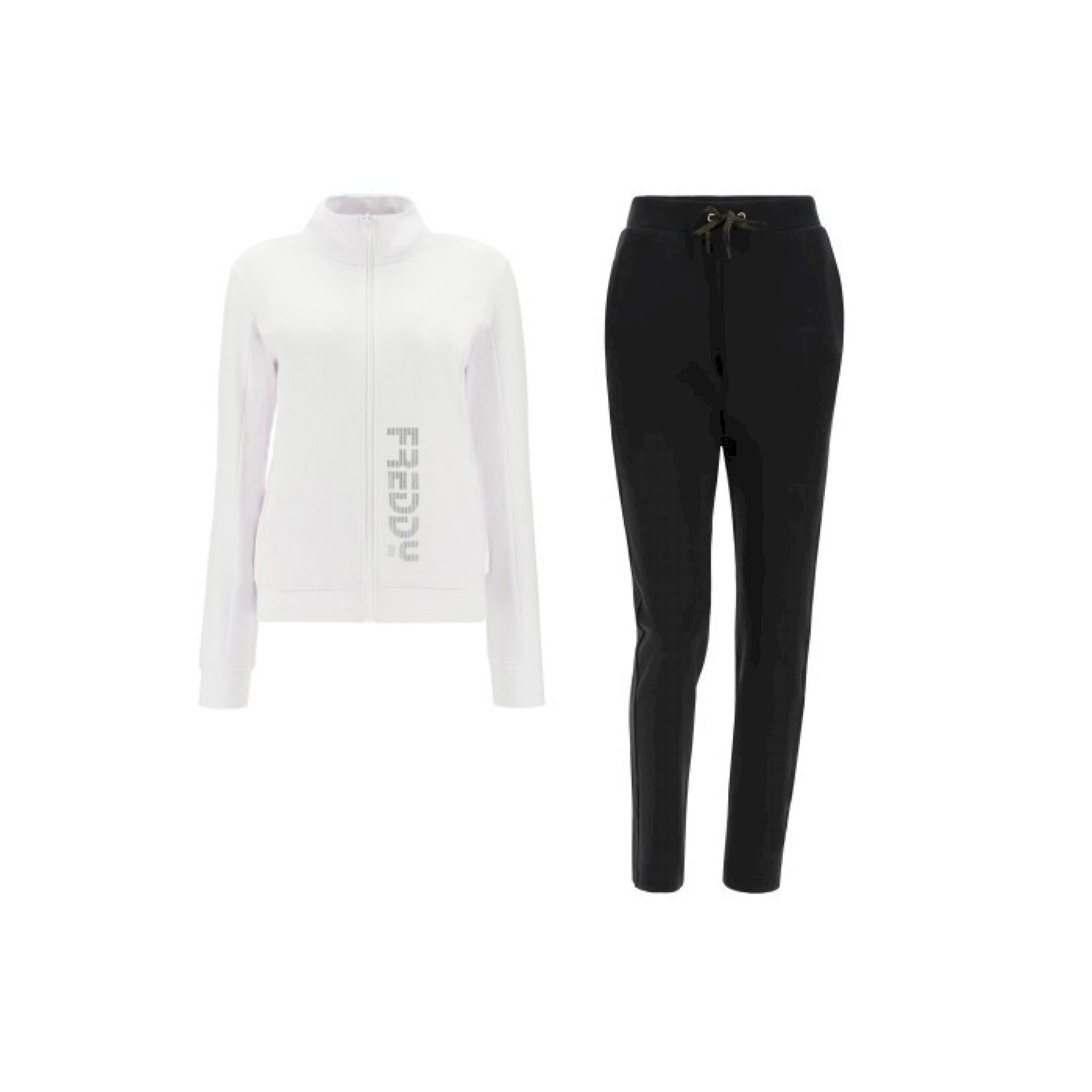 Tuta fullzip, scritta verticale sulla giacca, tasche a marsupio.