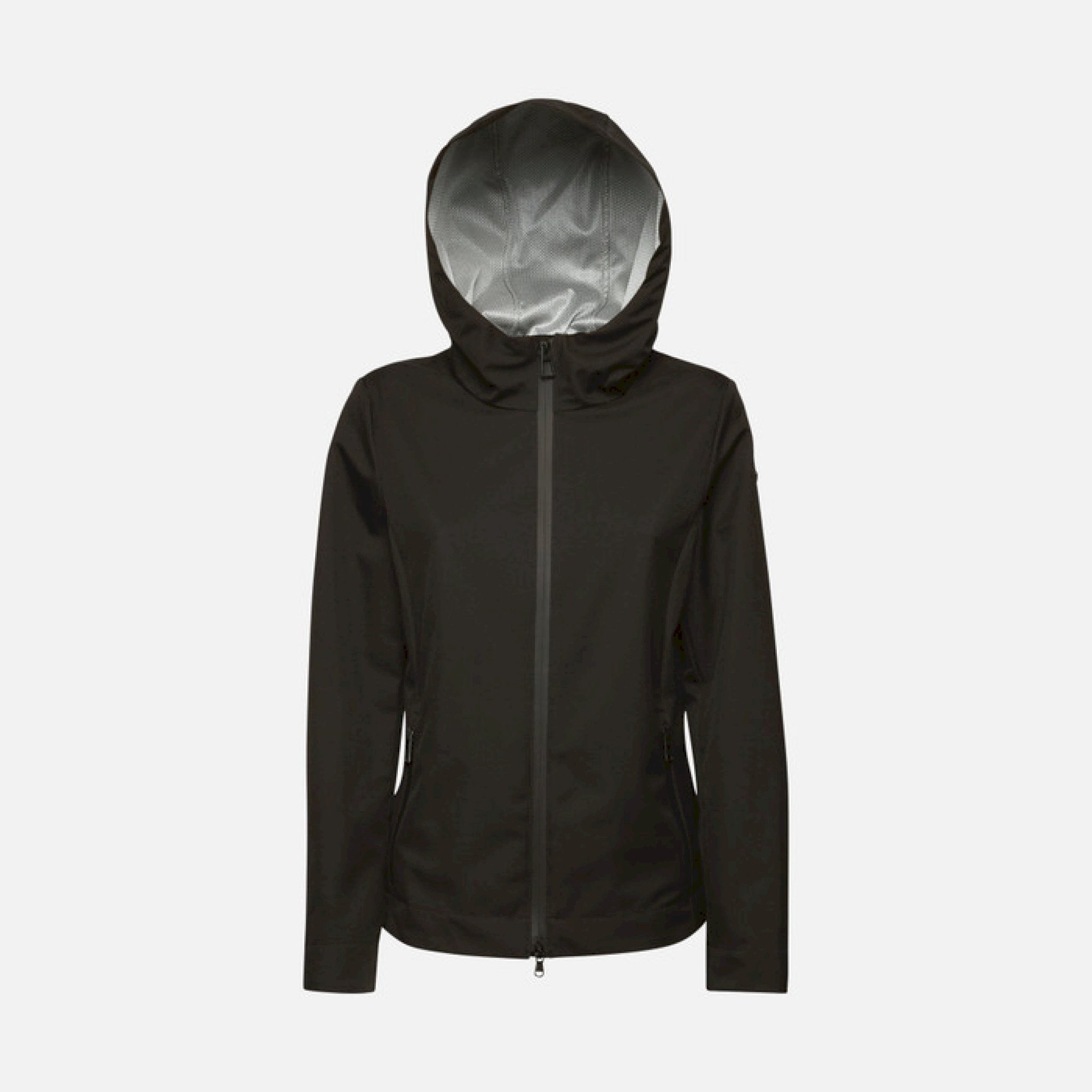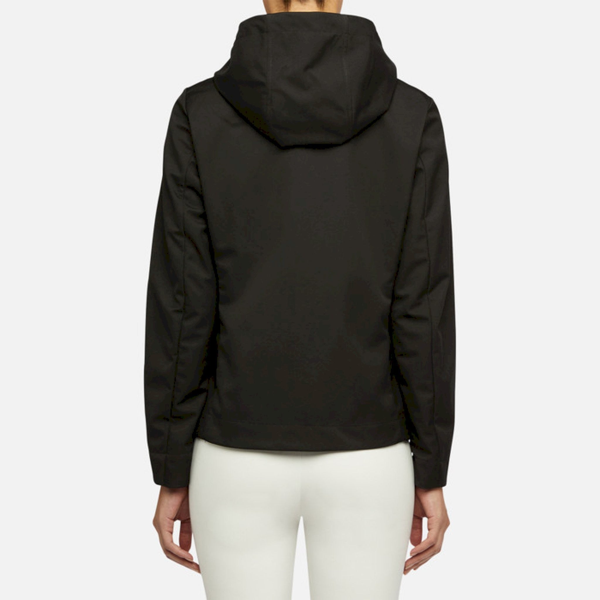 giacca donna, corta, dal look essenziale. la giacca laudara si fa notare per l'eclettico design minimale che valorizza la silhouette e per il look versatile, declinato in nero e arricchito da accessori ton-sur-ton. ideale per l'inizio della stagione, è realizzata in un super confortevole soft shell, morbido al tatto e resistente al vento.