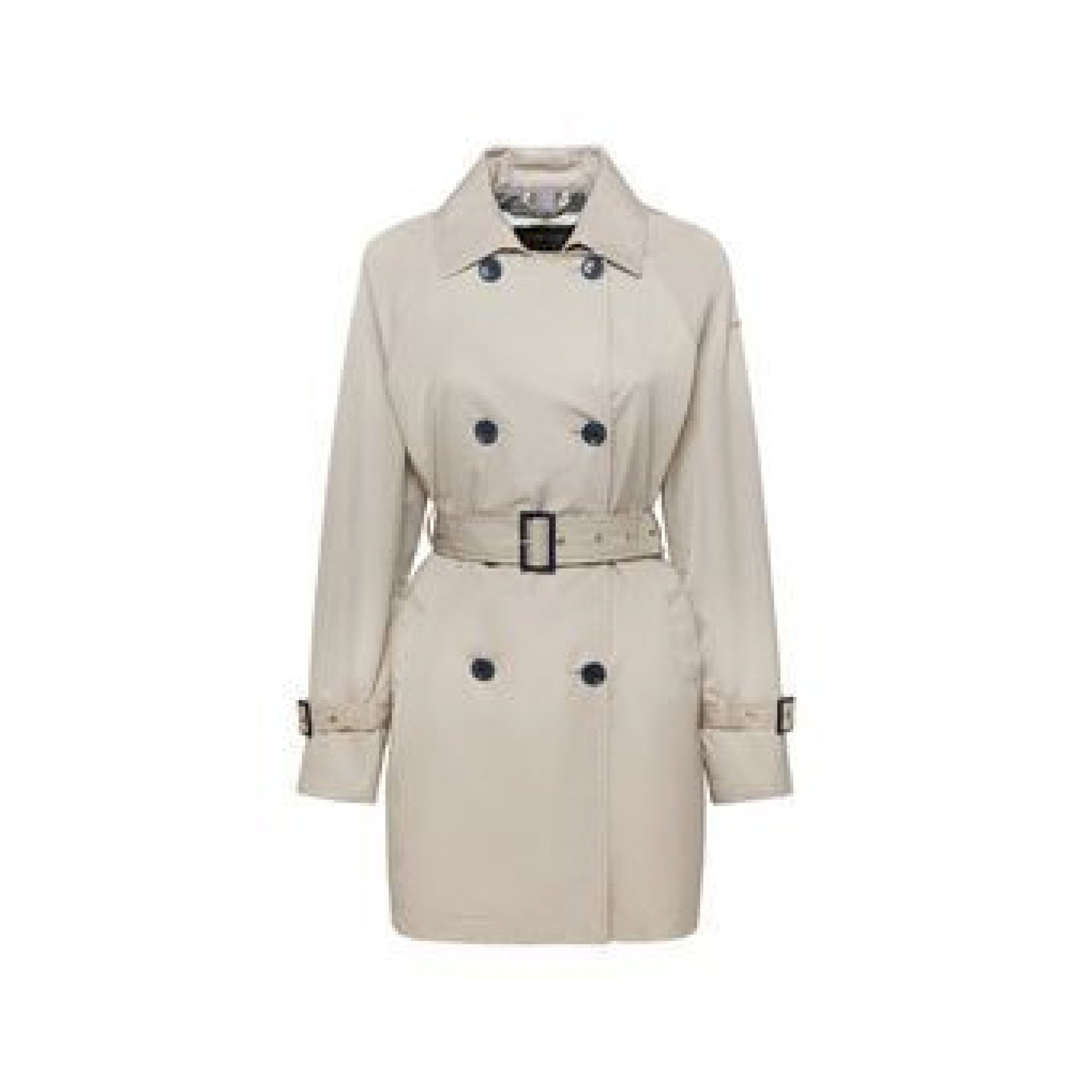 Trench doppio petto e cintura. É realizzato in un tessuto calvary twill di poliestere trattato water-repellent, resistente al vento e agli strappi. dotato di esclusivo sistema traspirante brevettato geox. fodera interna con stampa a pois. cintura removibile con fibbia. maniche con taglio raglan, per il massimo comfort nei movimenti. cinturini con fibbia su fondo maniche. carrè sul retro. fit: regular lunghezza: 82 cm.