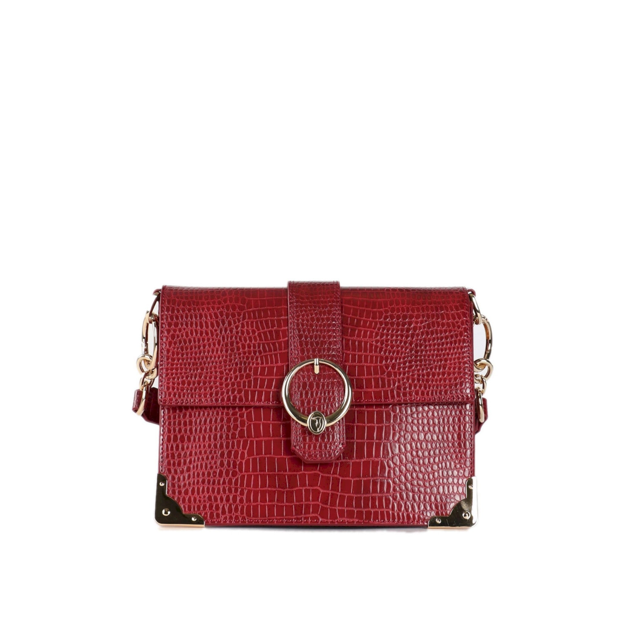 Borsa miami realizzata in similpelle stampa coccodrillo, dalla forma squadrata. il design è caratterizzato dalle finiture in metallo galvanizzato e dalla chiusura gioiello con fibbia tonda logata. il modello, qui in versione small, è dotato di doppia tracolla: corta per una portabilità a spalla, lunga per essere indossata comodamente cross-body.