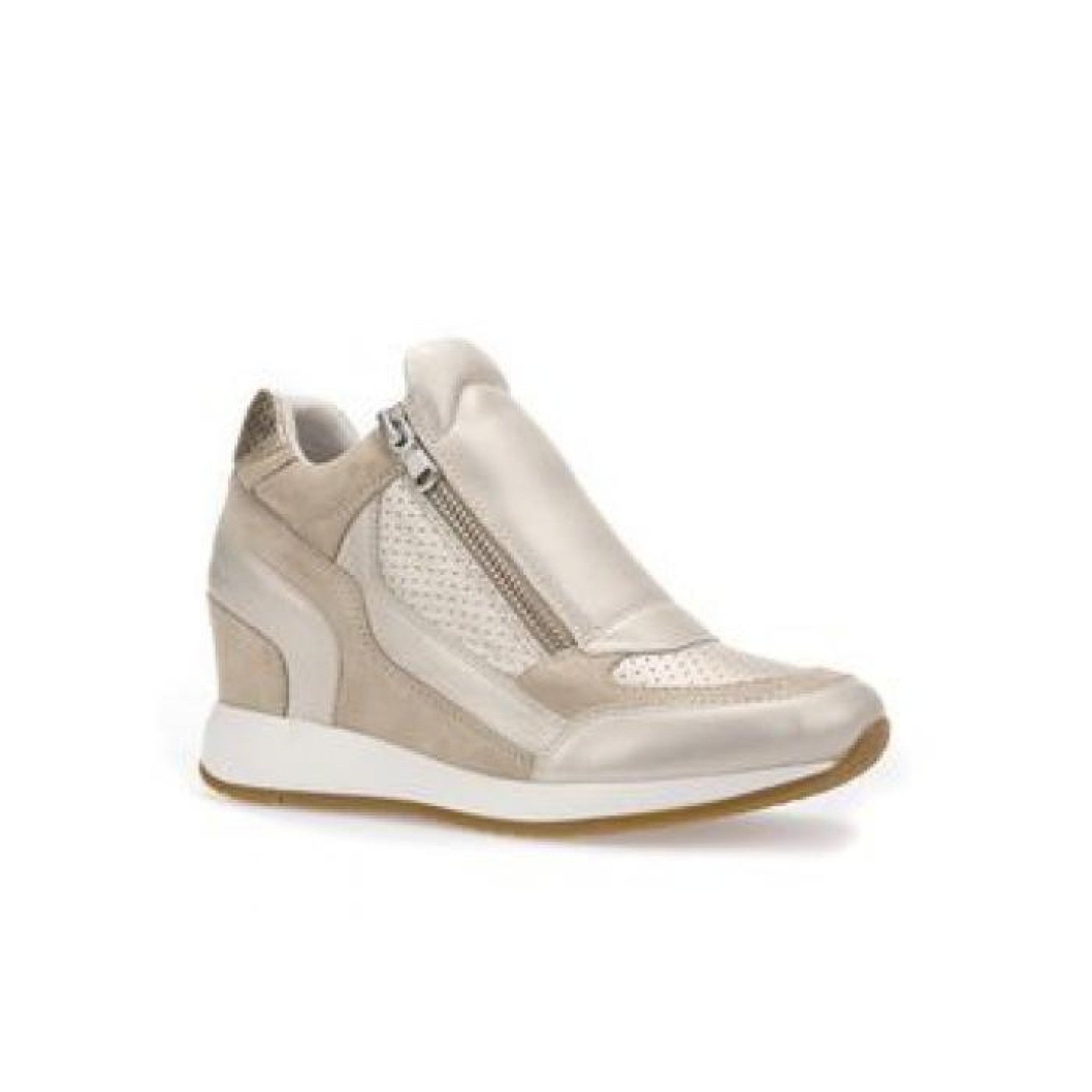 Sneakers zeppa alta con cerniera lato fondo bianco
