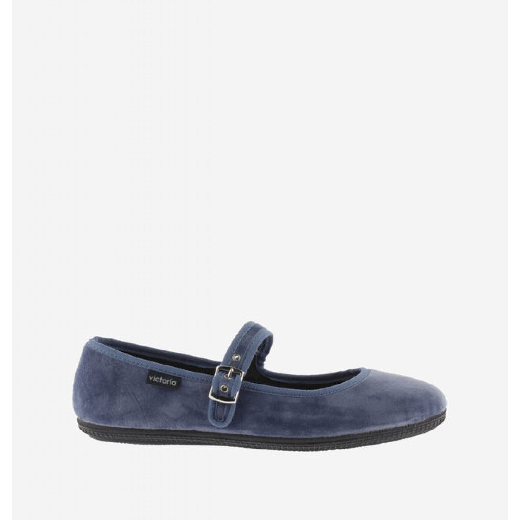 realizzate in velluto con una fibbia rettangolare per la chiusura e una comoda suola in gomma 100% naturale.